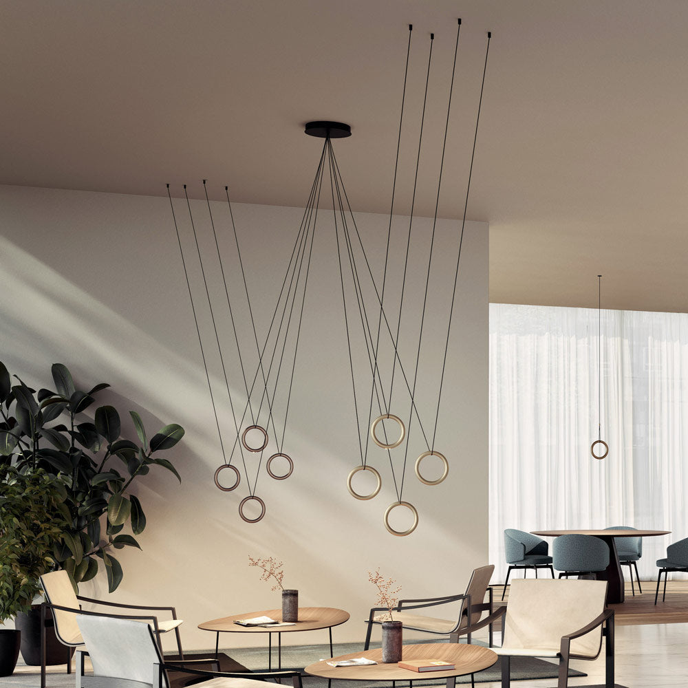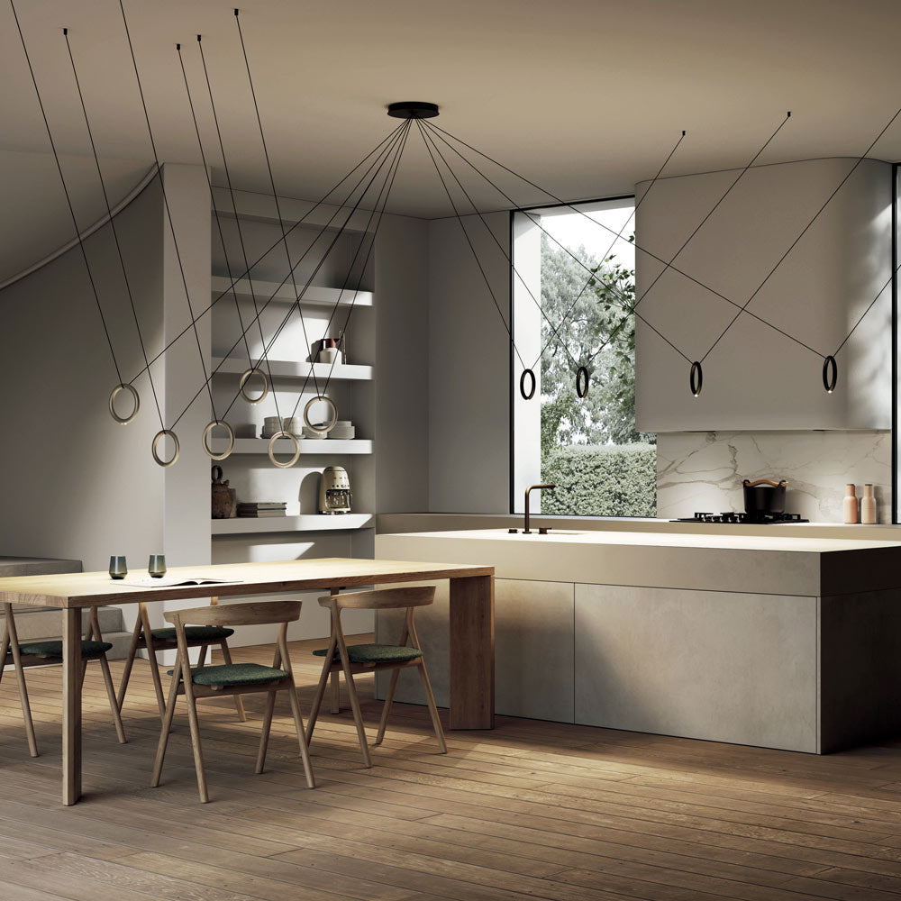 Refreshing simplicity and organic luxury infuse the Ivy V LED Pendant Light from LODES. A chic light source is tucked into the bottom of an open ring, with a double-cable suspension that creates versatility of placement to create a variety of looks.