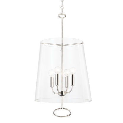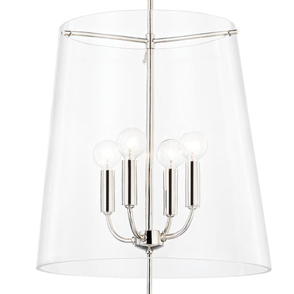 Radiant clear glass forms a decadent cylinder shade offering cover to a candelabra cluster, bringing sophistication and delicacy in this contemporary James Pendant Light from Hudson Valley Lighting.