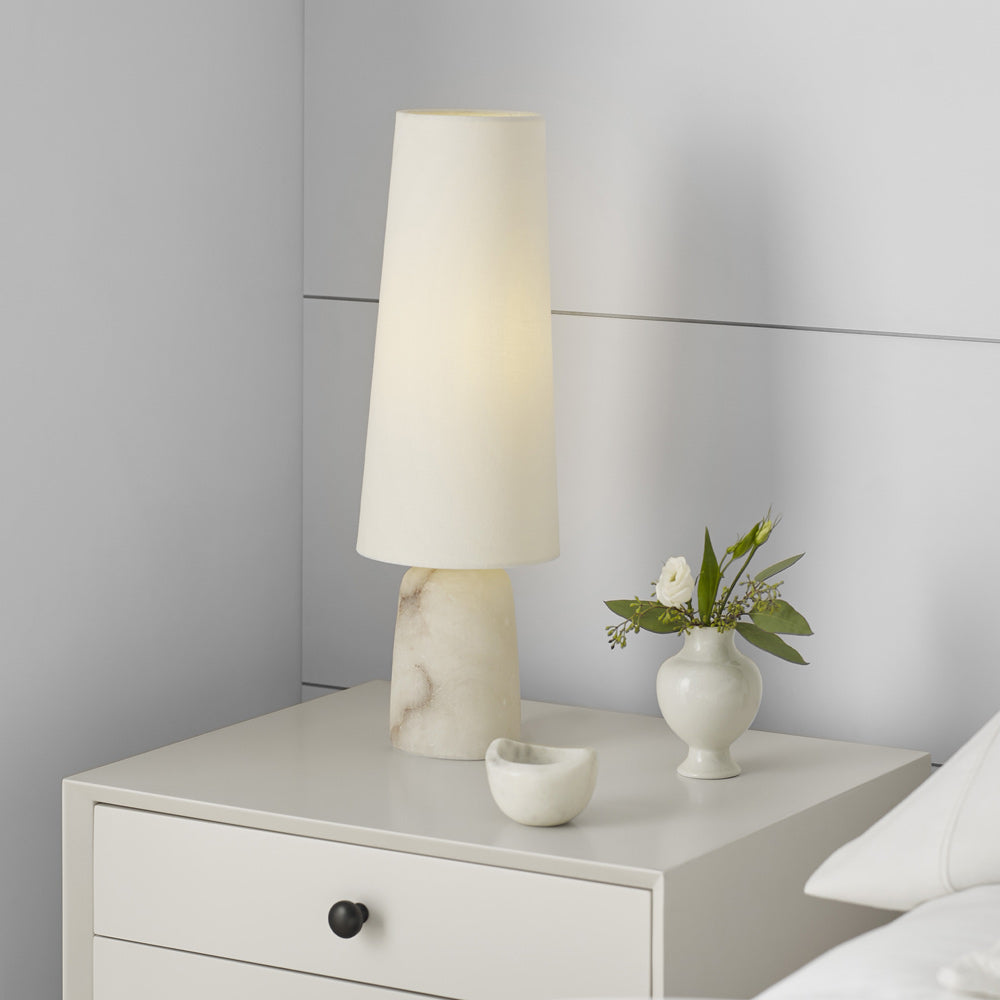 Captivating shaping goes tall and long, creating a vertical intersecting effect worthy of a quirky nuanced space. The Jinny LED Table Lamp from Visual Comfort Signature adopts a retro spin on modern design elements, topping a decadent rounded base with an extra tall, slender linen shade. Dress up a table or desk in a modern space with this lamp that features energy-efficient dedicated LED lighting.