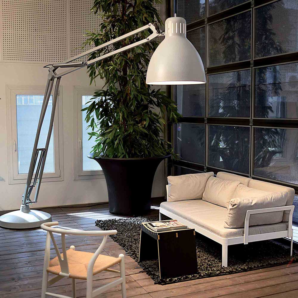 Scaled for a generous space, the JJ Great LED Floor Lamp from Leucos plays on a classic desktop silhouette while offering a sense of precision and balance to modern decor.
