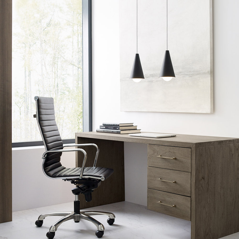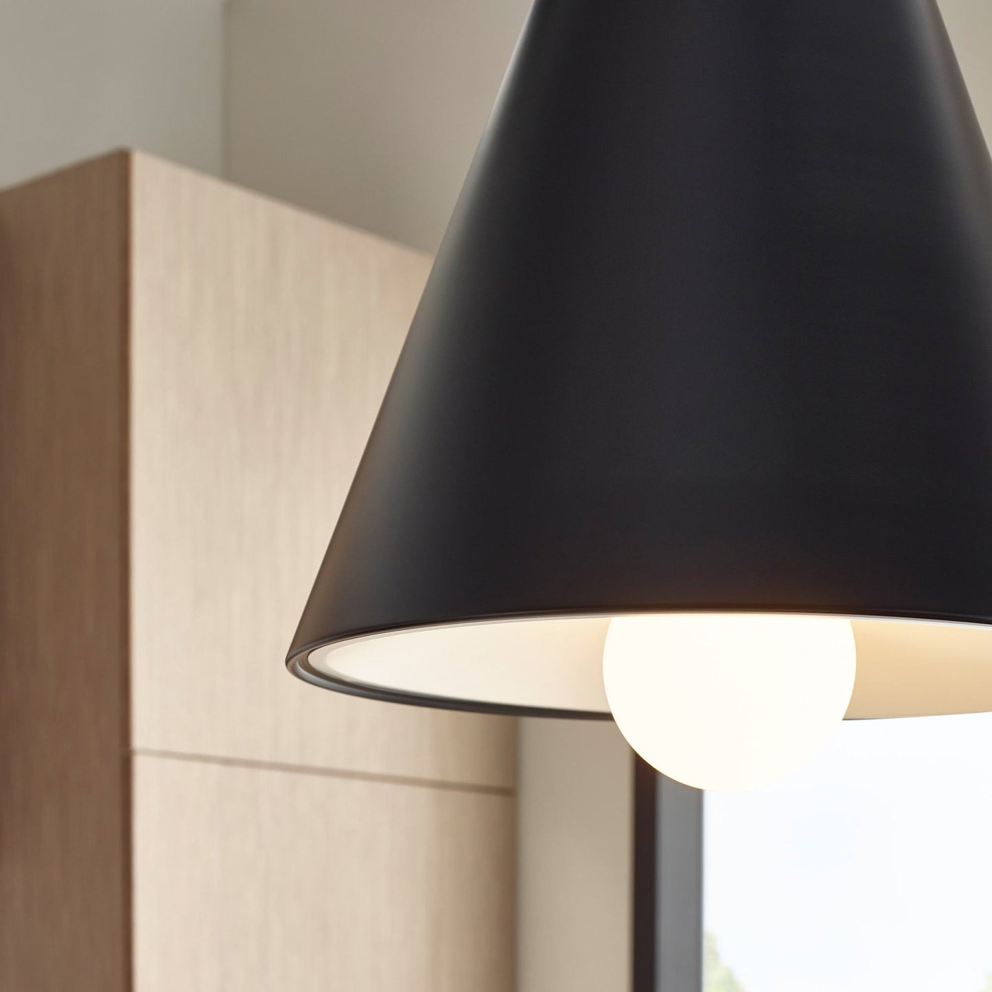 Joni LED Pendant Light by Sean Lavin from Visual Comfort Architectural features an integrated LED lamp suspended within a conical shade and creates a uniquely contemporary fixture. Designed for heightened visual interest with two-tone finish options, Joni is offered in three stylish finish combinations. Matte Black, Aged Brass, and Polished Nickel. All finishes have a Matte White inner reflector. At 17" in diameter, the Joni Pendant is a subtle contemporary statement piece great for your kitchen, living room, hallway and bedroom. Complete the look with the Joni Wall Sconce, Flush Mount and smaller scale Low-Voltage Pendant. Lamping options are compatible with most dimmers. Refer to the Dimming Chart for more information.