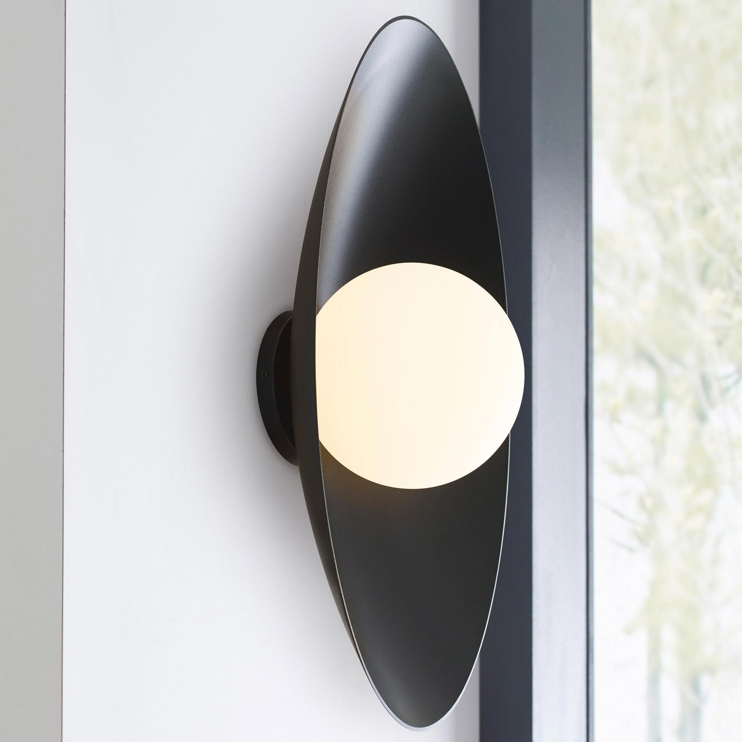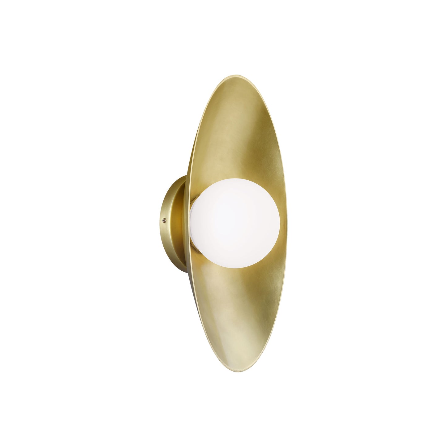 Joni LED Wall Light by Sean Lavin for Visual Comfort Modern features a glowing integrated LED that sits against the backdrop of a simple elliptical reflector. Designed with a contemporary aesthetic, Joni LED Wall Light has heightened visual interest with two-tone finishes designed for both indoor and outdoor applications. Offered as Matte Black outer shade with a Matte White inner reflector, all Matte Black and all Aged Brass (indoor-only). Three popular sizes make Joni Wall Sconces great for any environment. Complete the look with the extended Joni Family by coordinating with the Flush Mount and Pendants. Lamping options are compatible with most dimmers. Refer to the Dimming Chart for more information.