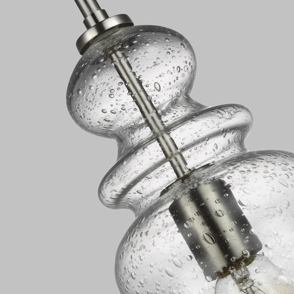The shapely, delicate character of a glass shade leaves sparkling elegance behind when the Kea Pendant Light from Generation Lighting changes the mood in any space. Bold metal framing with a decadently dark finish contrasts with clear glass in a design that adds timeless glam.
