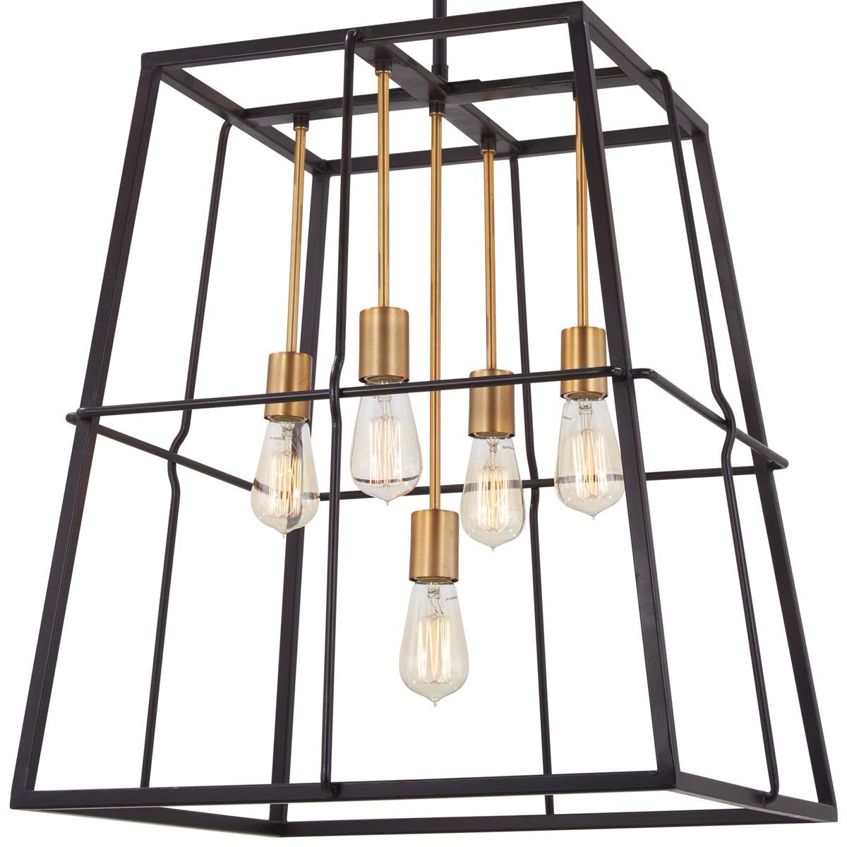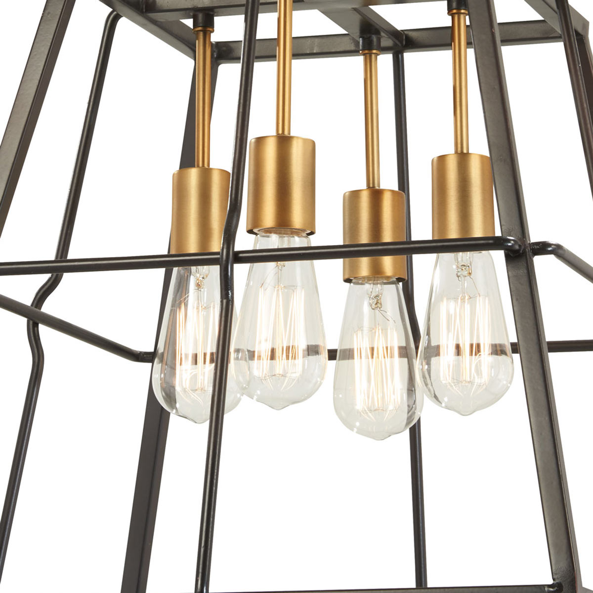 Lend a modern industrial vibe to bar tops, countertops, and dining tables with the Keeley Calle Pendant Light from Minka Lavery. Designed with an open cage-like frame in a dark painted bronze finish for a defined, lofty silhouette, this rustic-inspired pendant makes itself at home in modern farmhouse style interiors and minimalist modern homes. Each bulb suspends from a natural brushed brass socket that lends a touch of luxe and glamorous flair.
