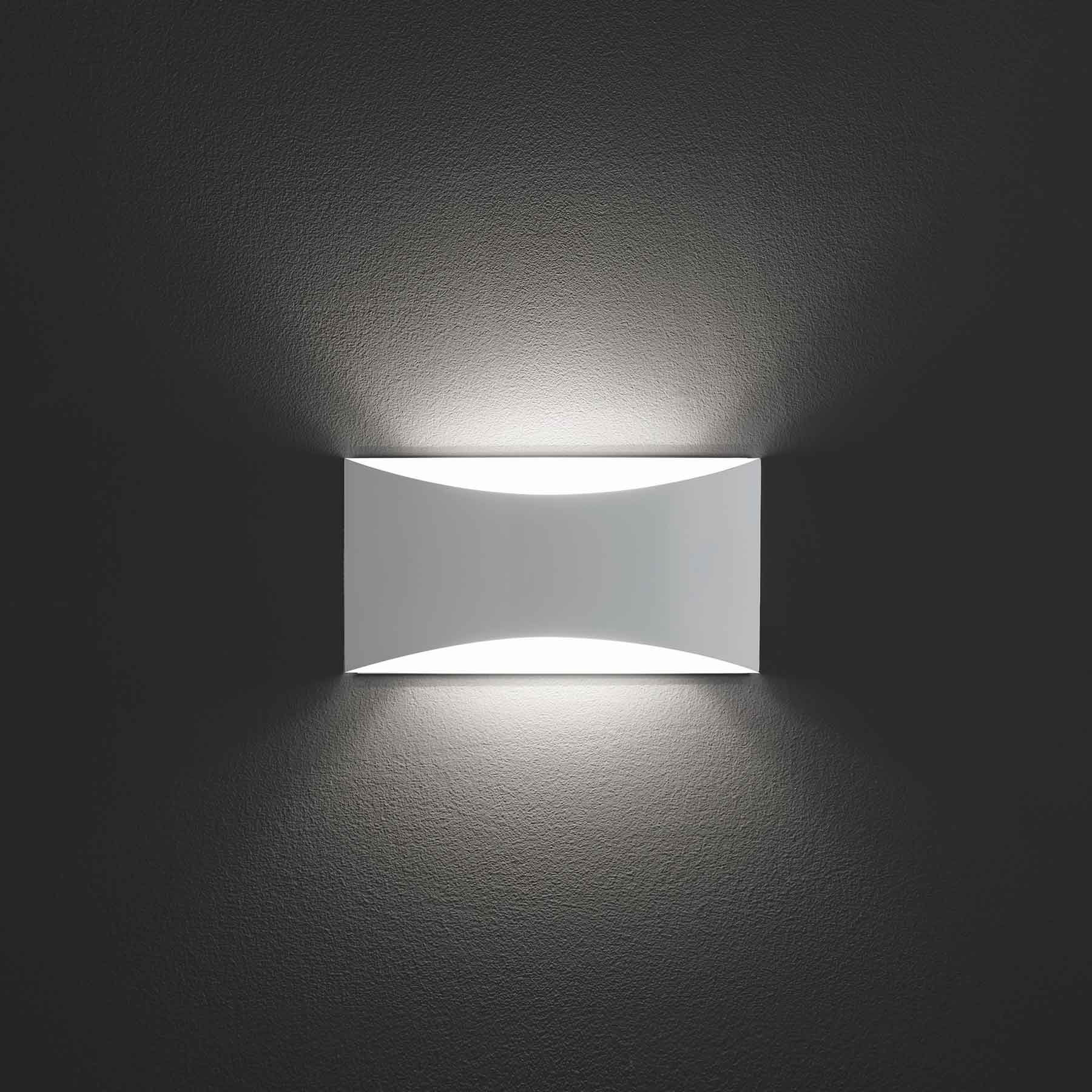 The Kelly wall lamp by Studio 63 is characterized by an elegant, minimalist design, an object that is capable of being gracefully, nonchalantly introduced into a wide range of housing environments. Its rectangular metal shape, made from curved, laser-cut metal, directs the light both upwards and downwards creating diffused, non-invasive lighting. Kelly is available in a white finish, in a Led version or with a traditional light source.
