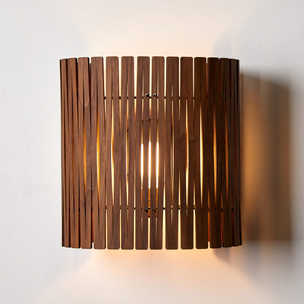 Constructed of eco-friendly certified plywood, the Kerflights Wall Light from Graypants offers a shining example of organic artistry in room illumination. This rustic fixture features a powder-coated finish over strips allowing rays of soft, romantic lighting to shine through with mood impact.