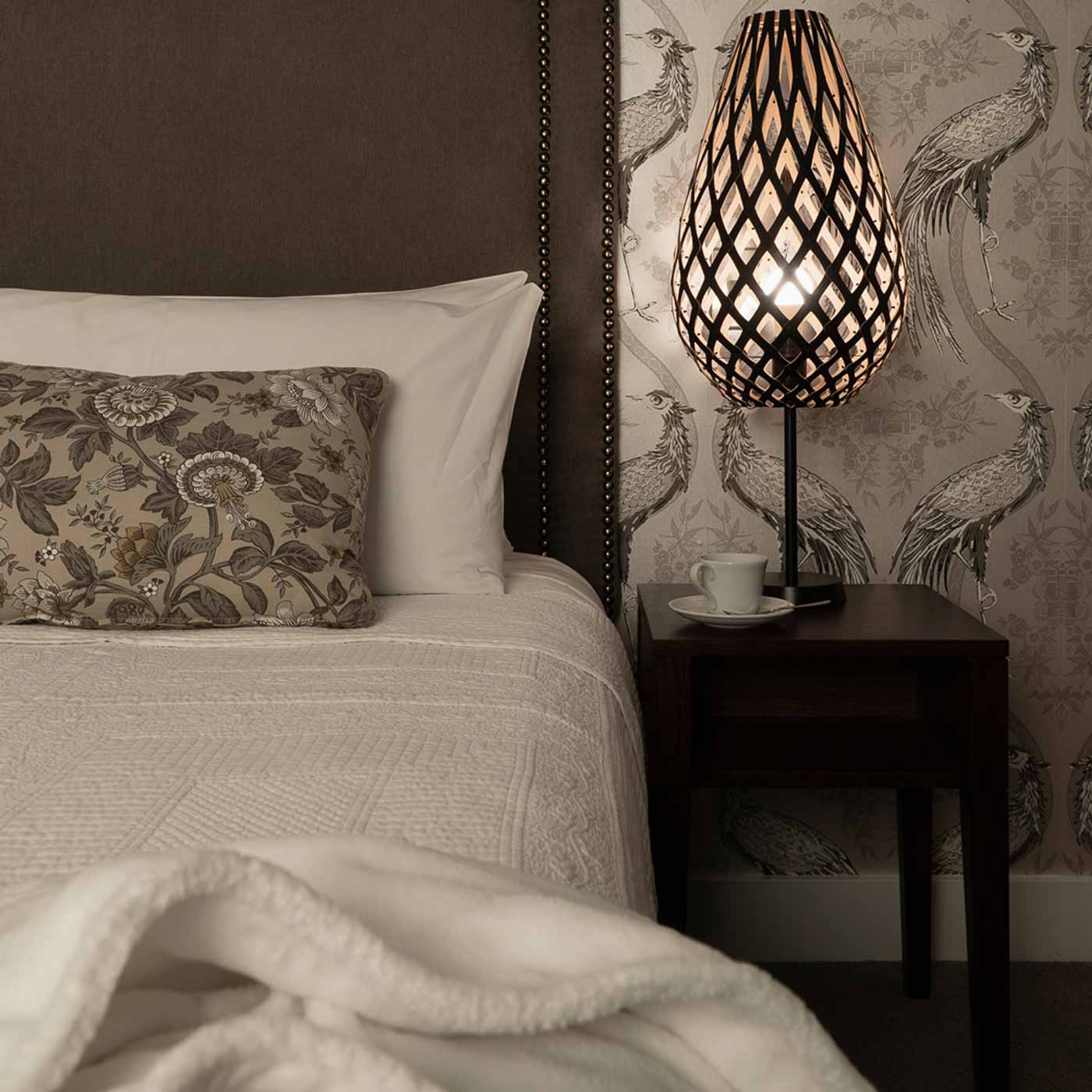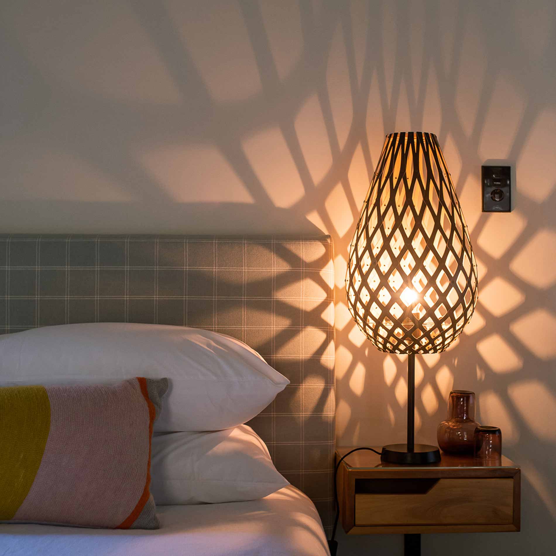 Coastal inspiration suffuses the Koura Table Lamp from David Trubridge with organic, natural ambiance. Casting intriguing shadows when illuminated, this is a spectacular upgrade for a nightstand or side table.