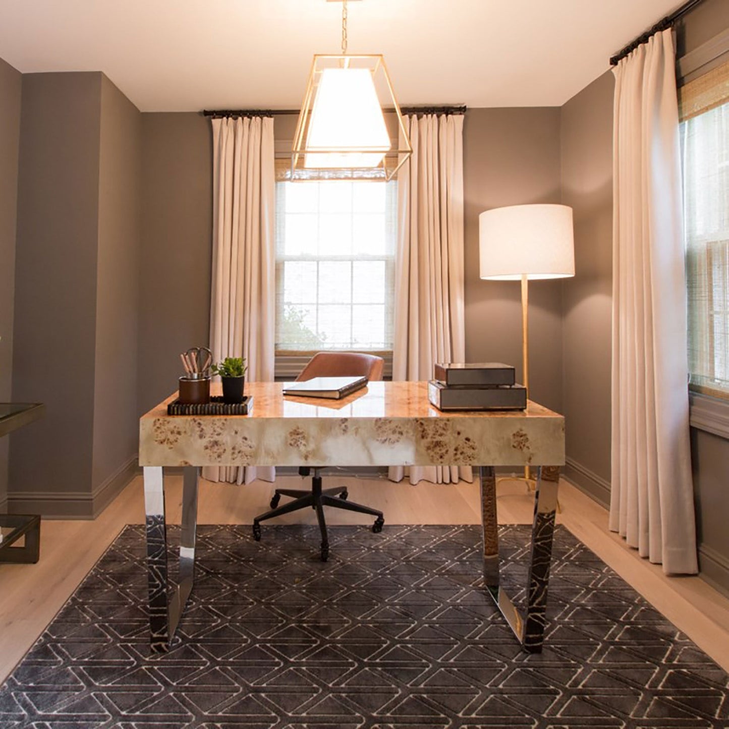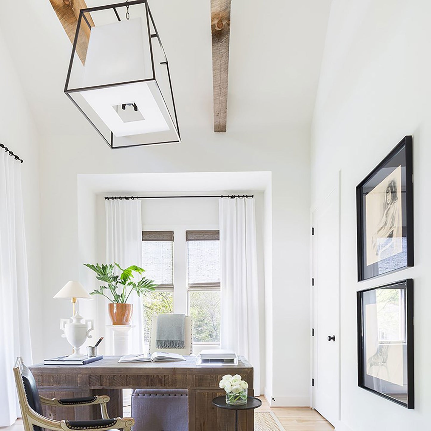 Appealing contrasts add dimension to Kyle’s geometric minimalism. We suspend the smooth expanse of the shade within an airy frame of cast metalwork. The open space between the matching shapes emphasizes the inherent beauty of Kyle’s geometric form.