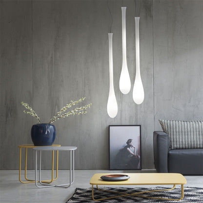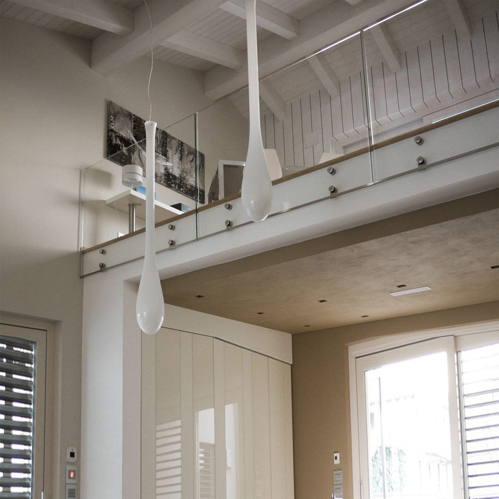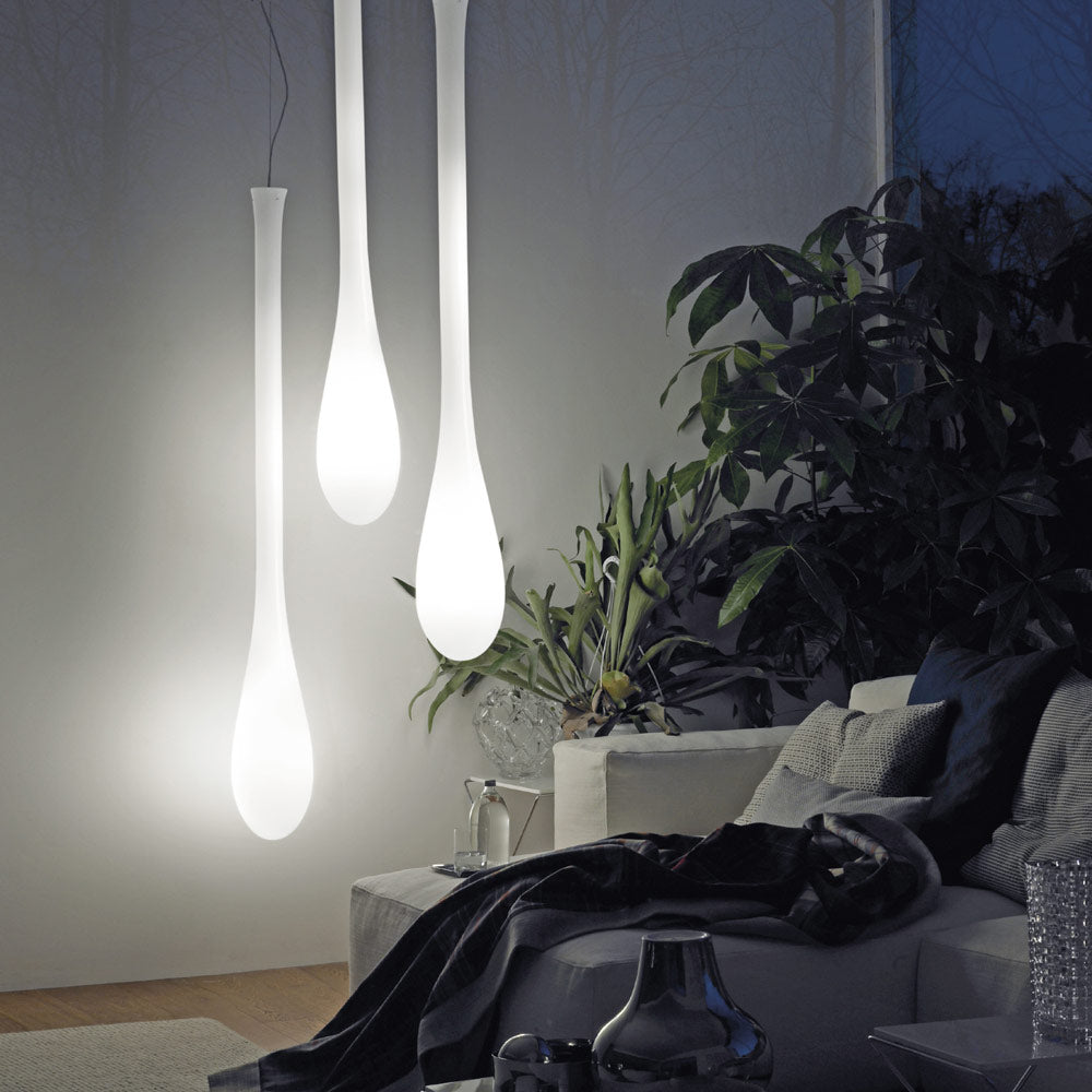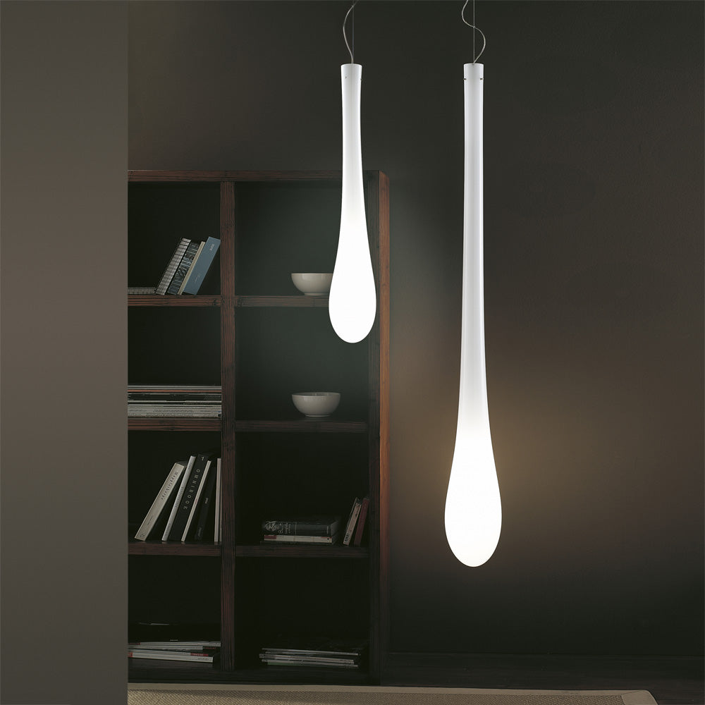 Smooth, organic silhouetting creates casual elegance with an updated motif as the Lacrima Pendant Light from Vistosi lifts the contemporary flavor of a modern living setting. Using the delicacy brought by white glossy finish glass, this elongated fixture and its diminutive satin nickel accent offers chic style and a whimsical vibe perfect for inducing abstract sophistication.