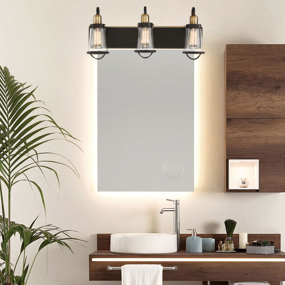 An enchanting blend of nautical and industrial creates splendid charm as the Lansing Vanity Wall Light from Savoy House serves as an upgrade to ensuite and guest bath spaces. Dual finish metal construction includes careful, specific detail and framing, as clear glass conical shades sparkle with radiance from ambient lighting.