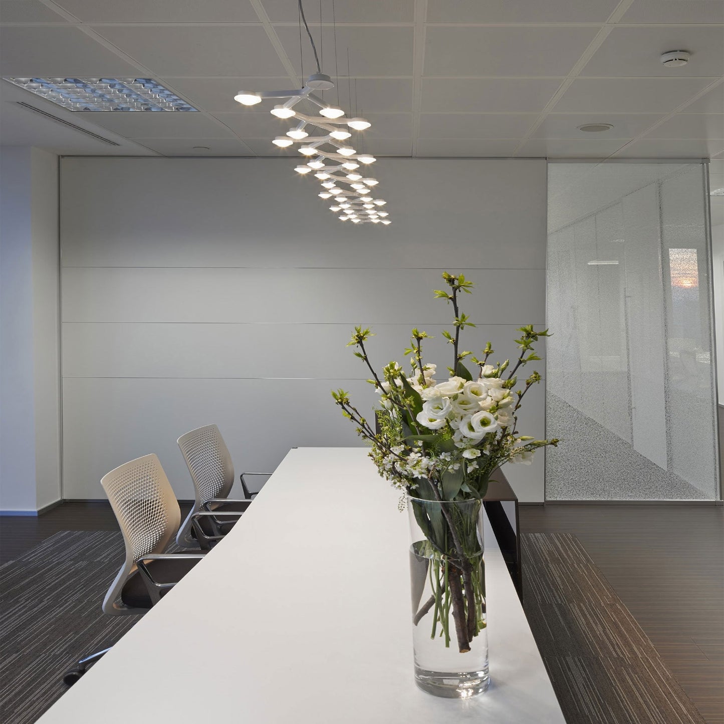 Three branched segments create length and intrigue for the LED Net 66 Linear Suspension Light from Artemide.
