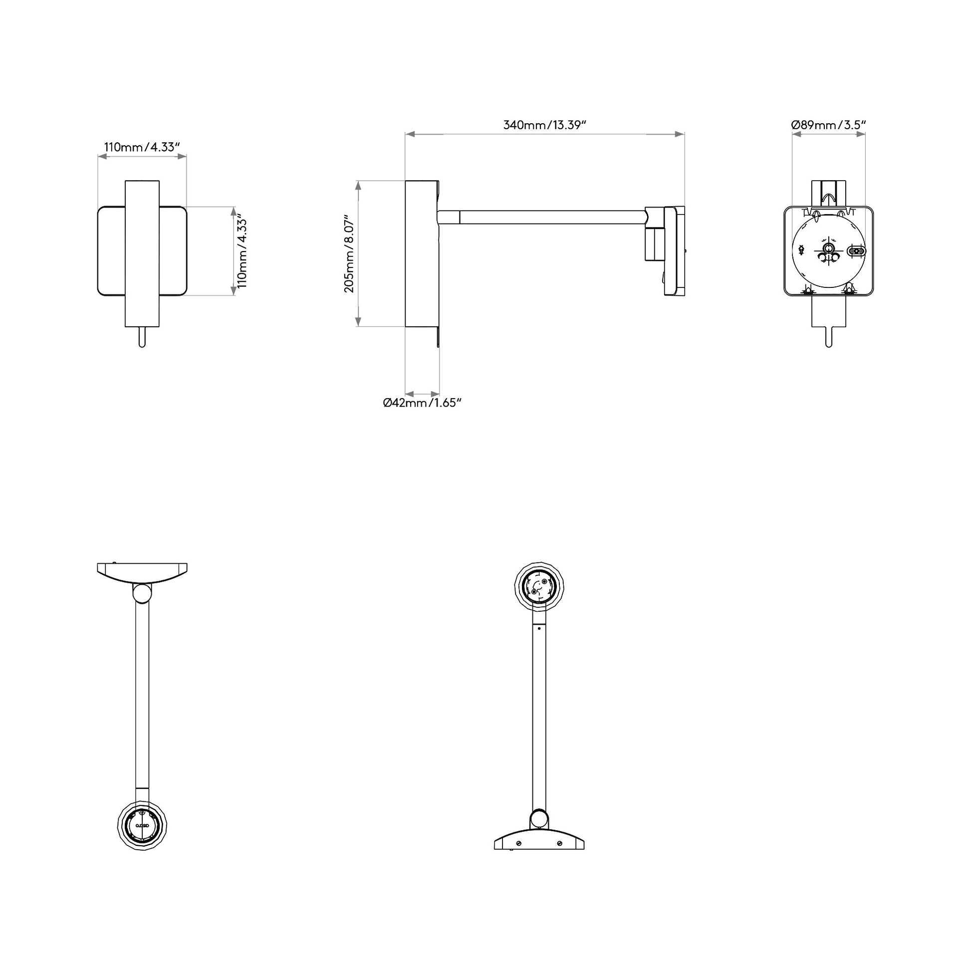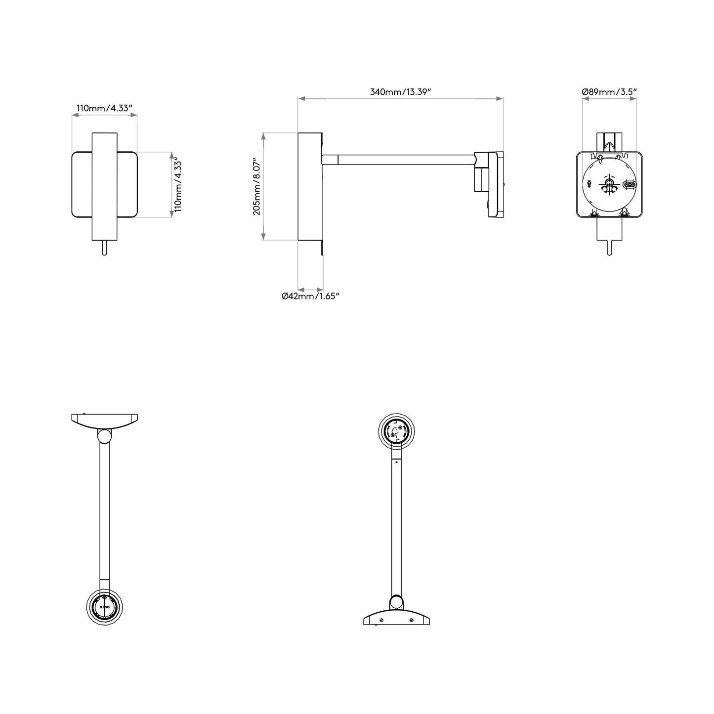 - Dimensions: 4.33"W X 8.07"H; 13.39" Extension