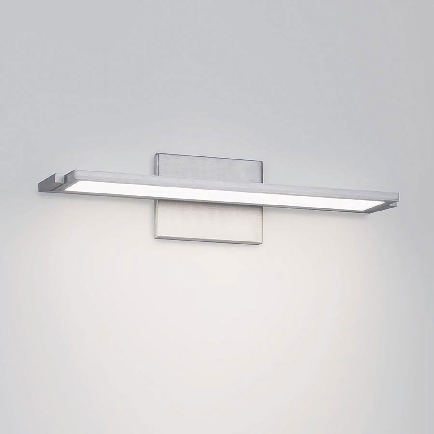 Geometry dominates the design motif of the aluminum constructed Line LED Bath Vanity Wall Light from dweLED, creating a dimensional effect and direct or indirect lighting through an acrylic diffuser.