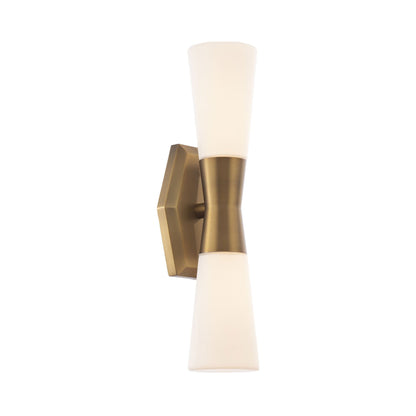Embellishing a custom modern space, the Locke LED Bath Wall Light from dweLED meshes architecture and art with a hint of retro inspiration, blending aluminum and opal glass to shape a sleek silhouette perfect for accent lighting.