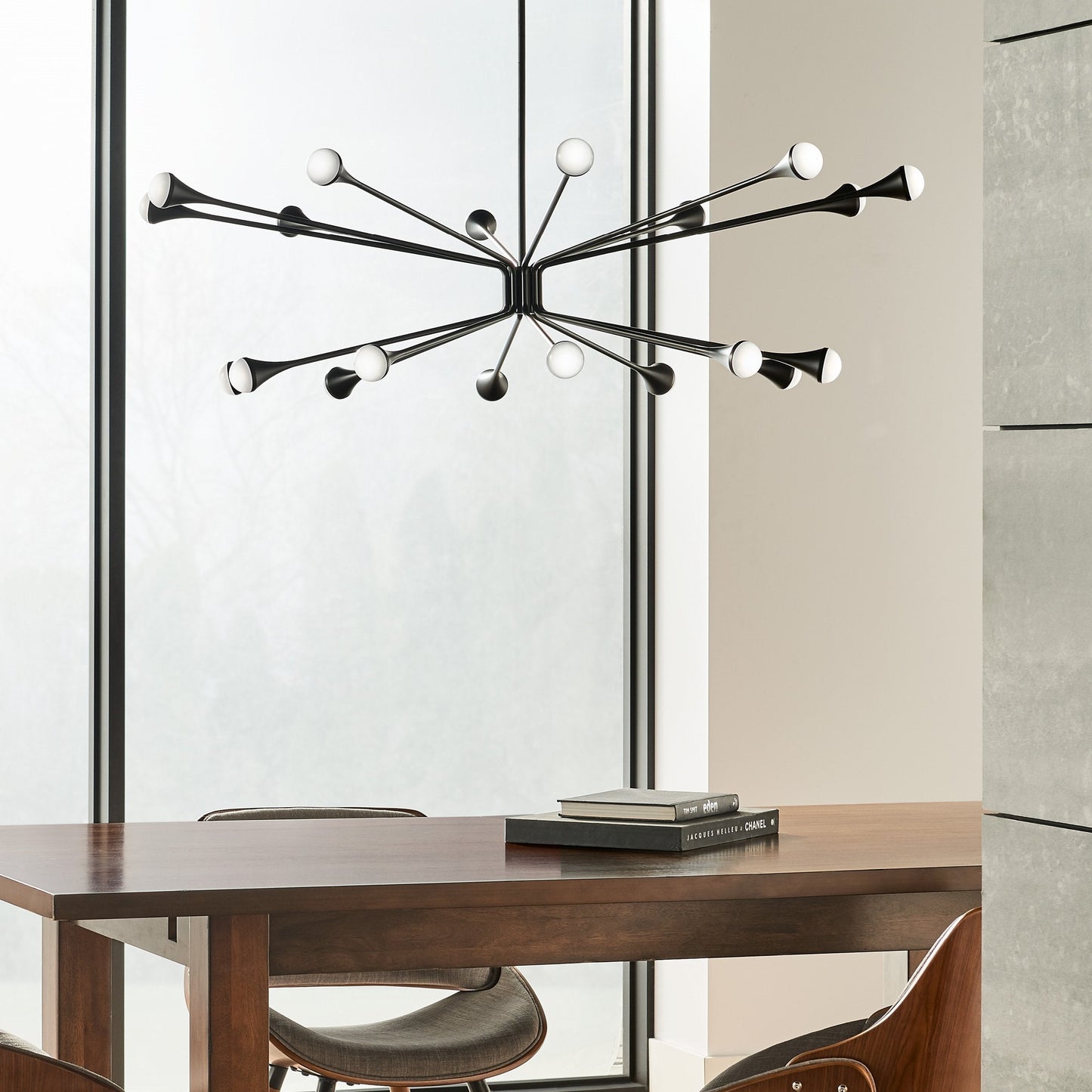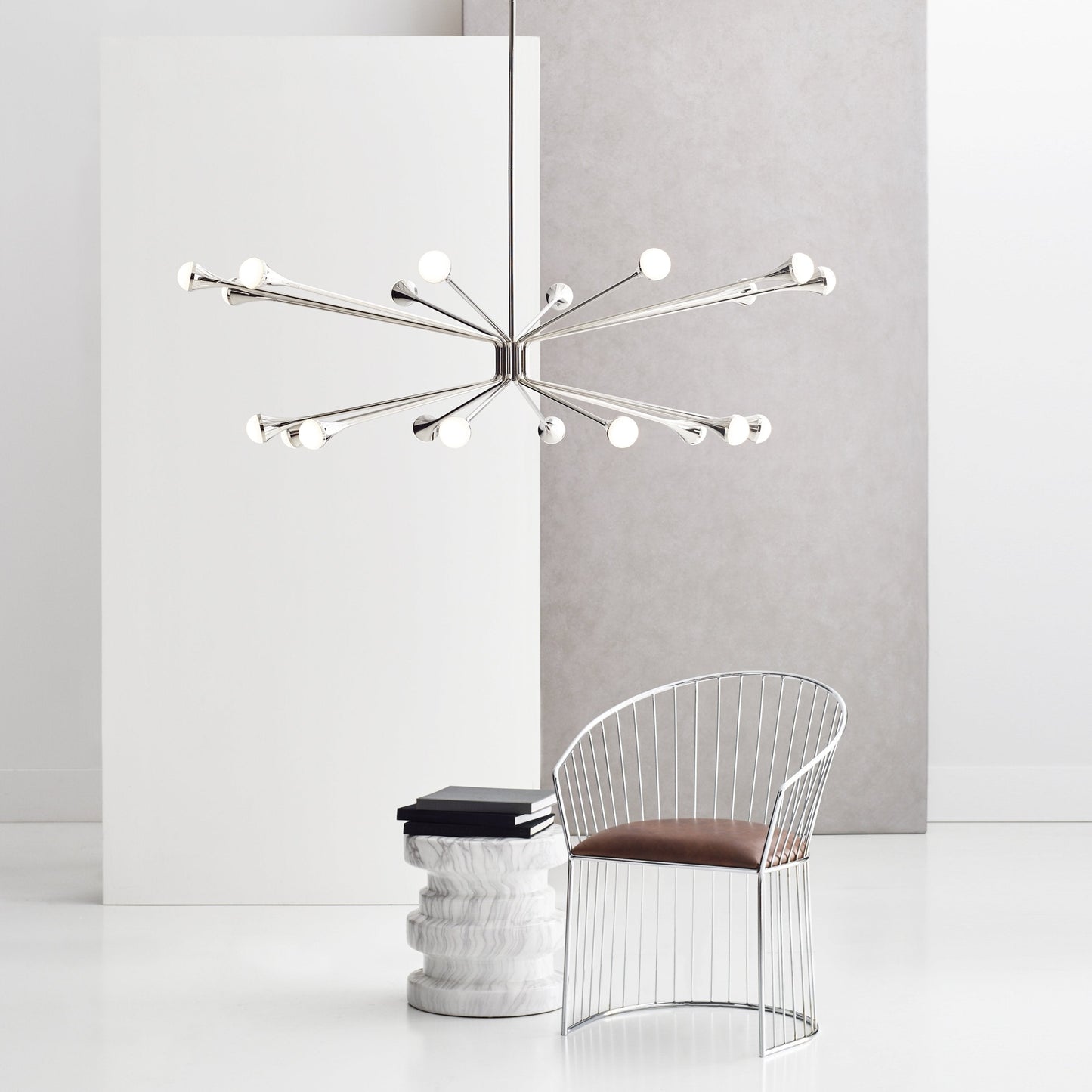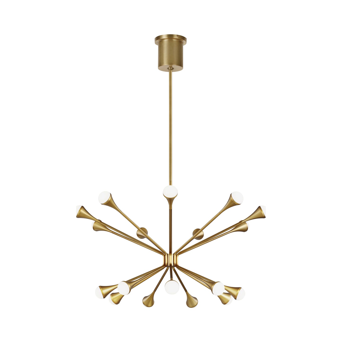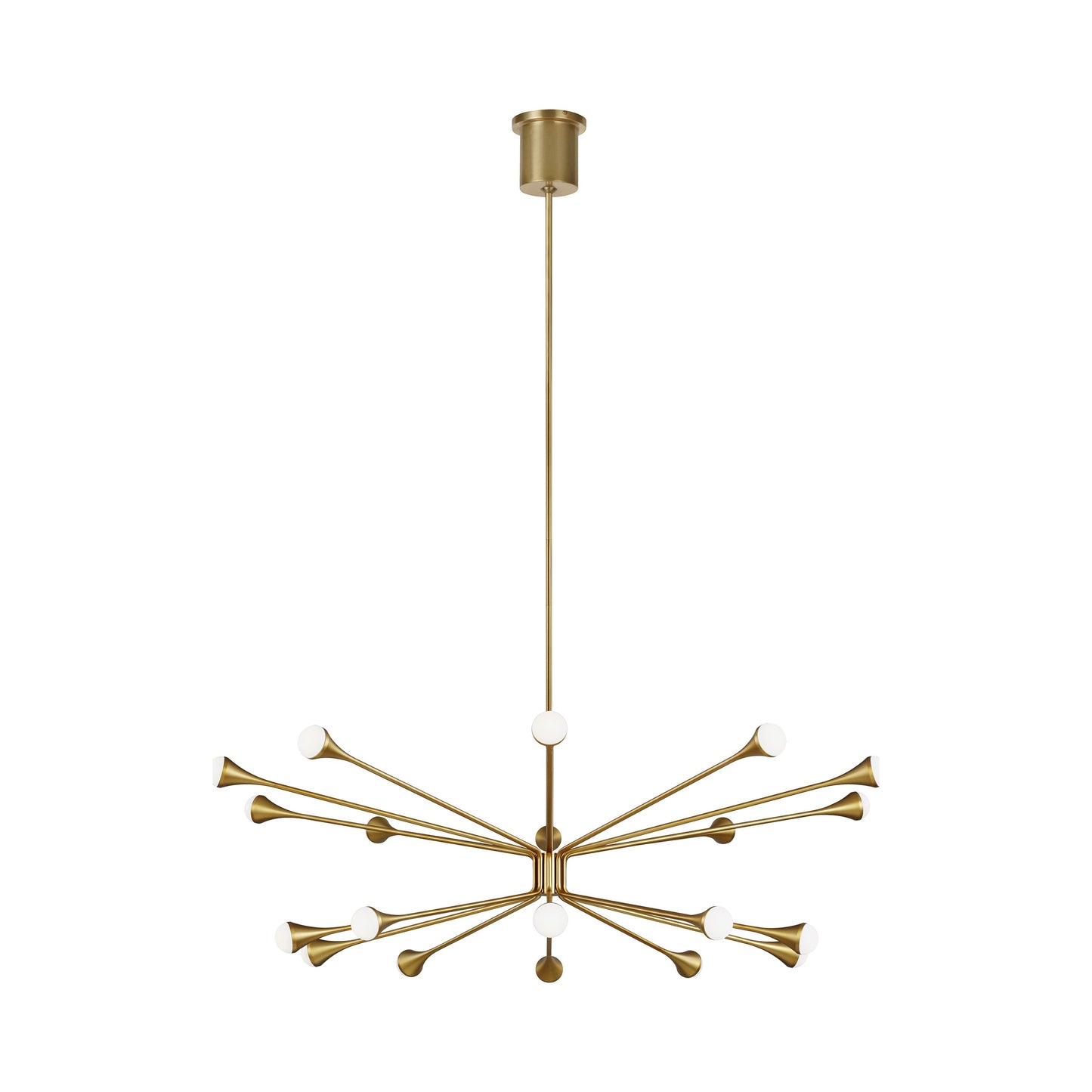 This Mid-Century Modern-inspired family, Lody by Sean Lavin for Visual Comfort Modern, recreates a retro look with contemporary appeal. The Lody LED Chandelier features 18 orbed diffusers mounted to the ends of flared arms to create two rings of up and down LED illumination. Offered in three clean finishes, aged brass, matte black and polished nickel, Lody provides a modern lighting statement for living rooms, dining rooms, foyers along with commercial and hospitality spaces. Complete the look with additional Lody chandelier options, and bath lights. Lamping options are compatible with most dimmers. Refer to the Dimming Chart for more information.