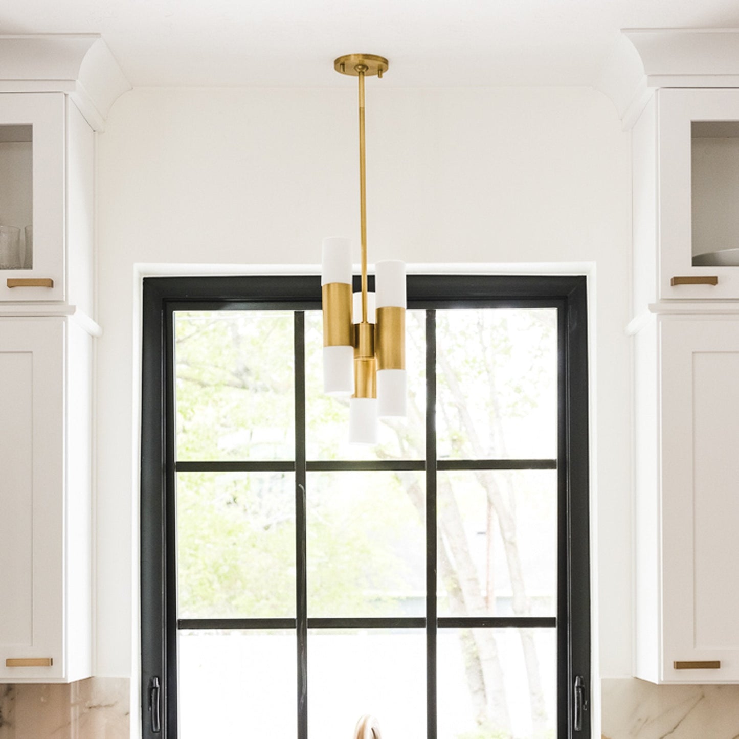 Work ambient lighting into an artistic design scheme, starting with the Lola LED Pendant Light from Mitzi. Casual goes contemporary and classic with a slick arrangement of metal-banded glass shades that offer a candle silhouette and infuse an Art Deco like glam around a modern space.