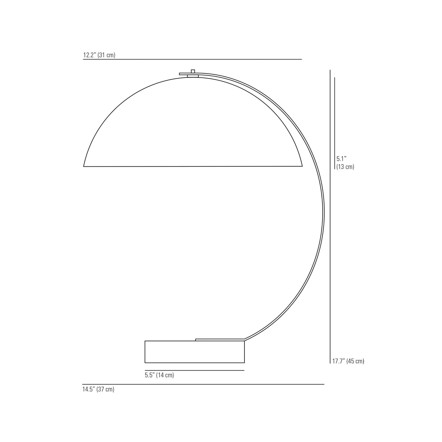 The London Table Lamp from Original BTC updates an iconic retro-inspired design as it glows with ambient illumination at a workspace or on a nightstand. Spun aluminum creates a semi-sphere shade topping an alluringly curved arm. Precise engineering and commitment to quality weaves in purposeful elements embellishing the lighting experience.