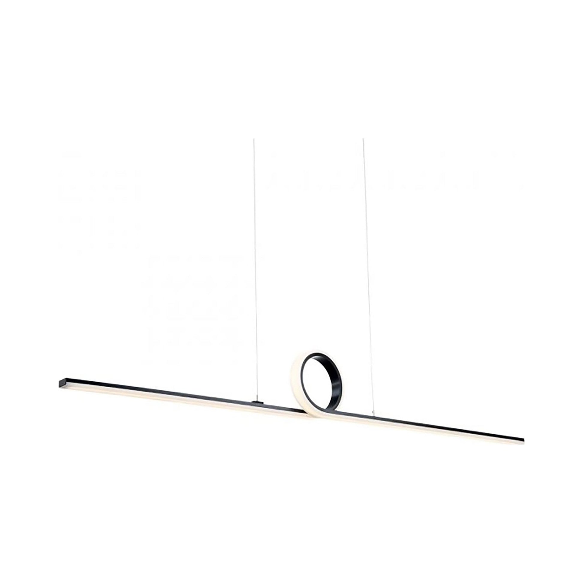 A minimalist design sends soft lighting and a charming motif in a modern space when the Loophole LED Pendant Light from dweLED suspends over a contemporary dining or living space, showing off a slender looped aluminum frame and composite diffuser that sheds task or ambient lighting in a 360-degree span.