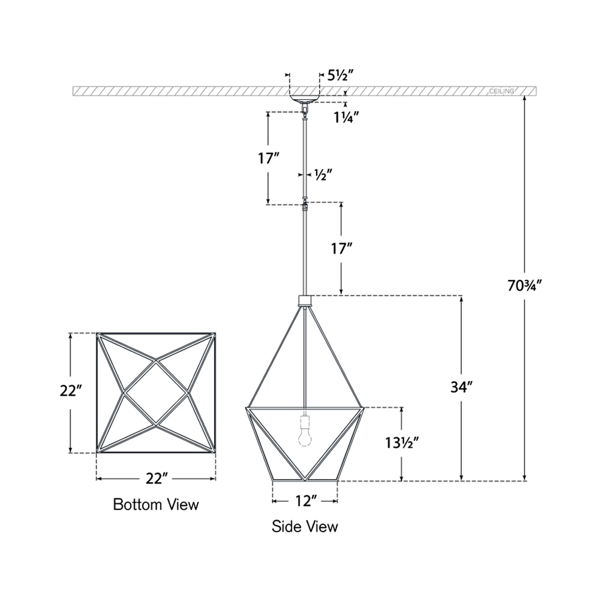 • Dimensions: 22"W X 34"H; 70.75" max height