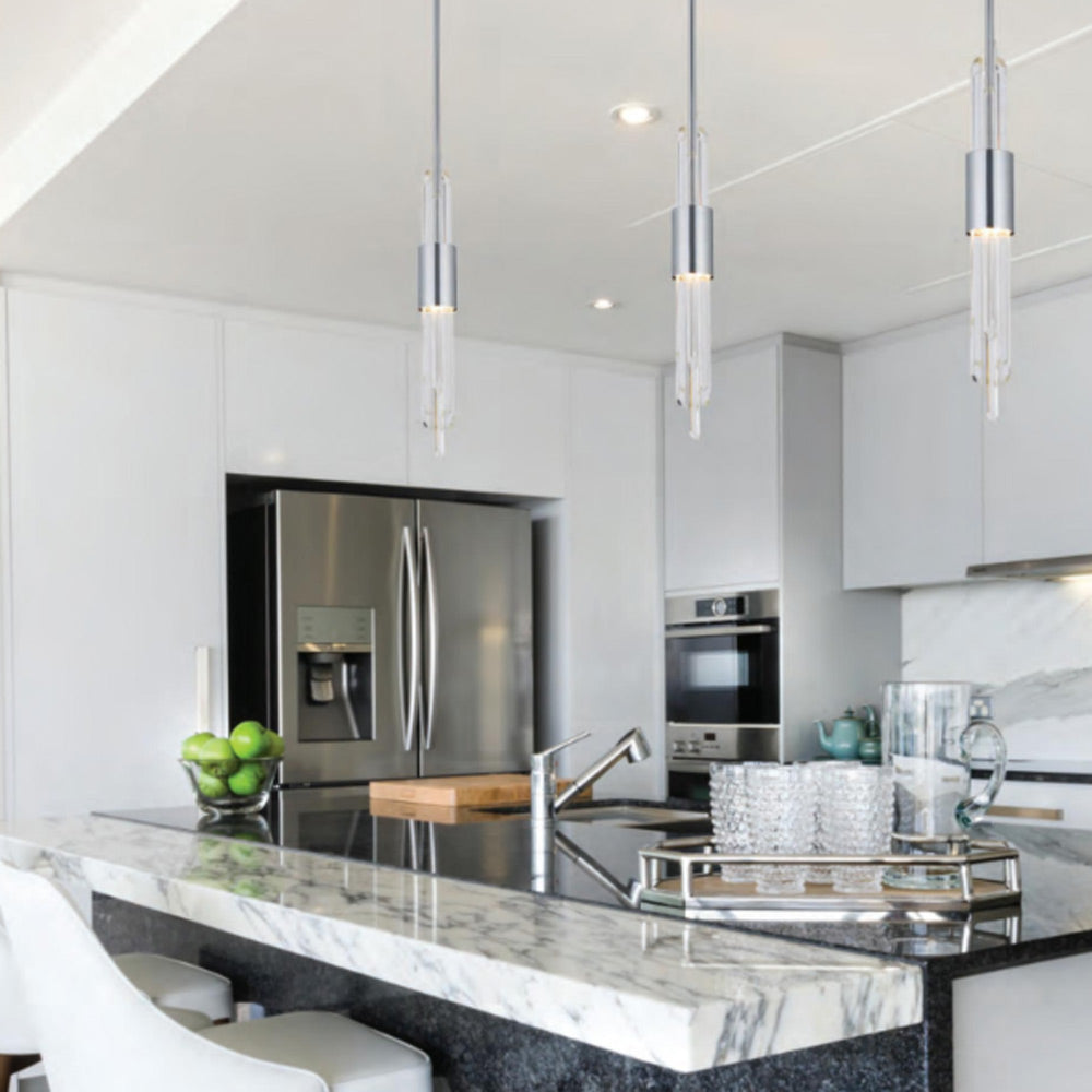 Drop a sophisticated sensibility into your favorite space with the clustered design of the Lucca LED Mini Pendant Light from Allegri. Inspired by beautiful jewelry with an Art Deco touch, the pendant filters light through a tight gathering of crystal rods of varying length to create rich, organic texture and an inviting glow of illumination. A stunning design accent in a kitchen, entry or bath.