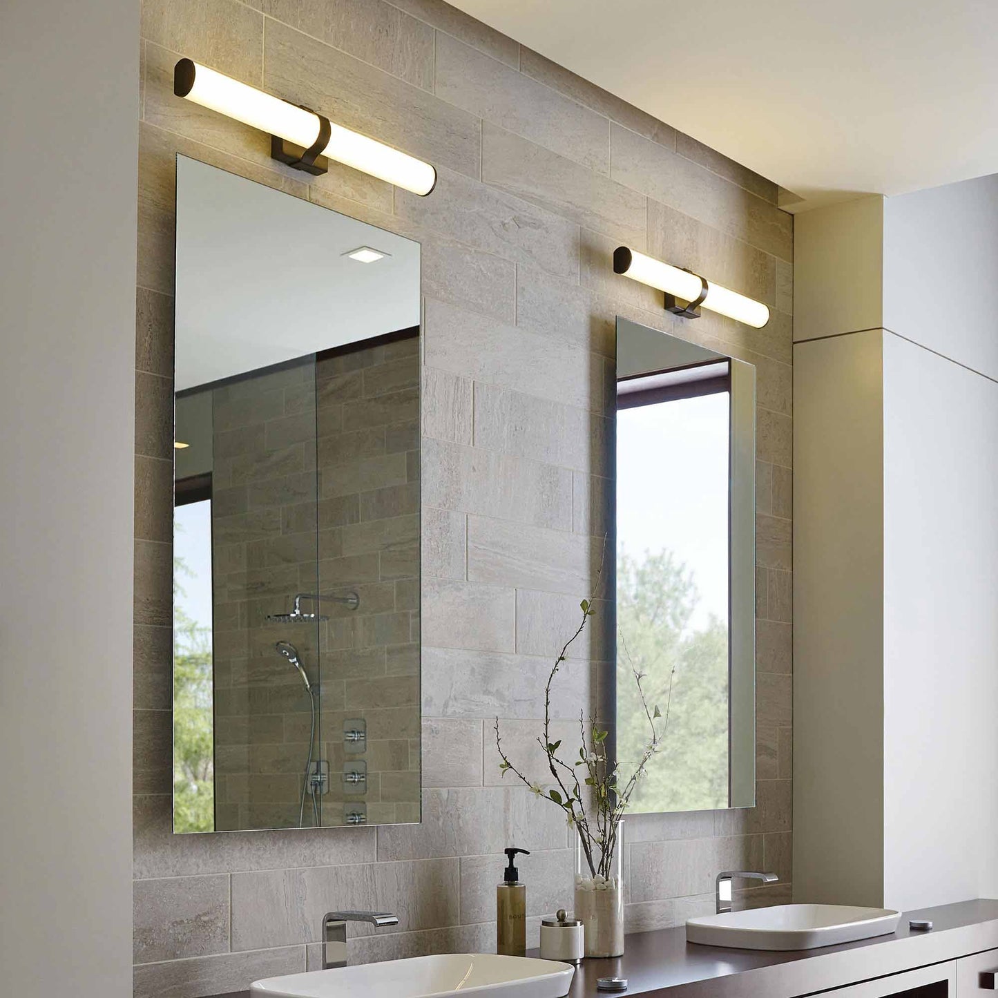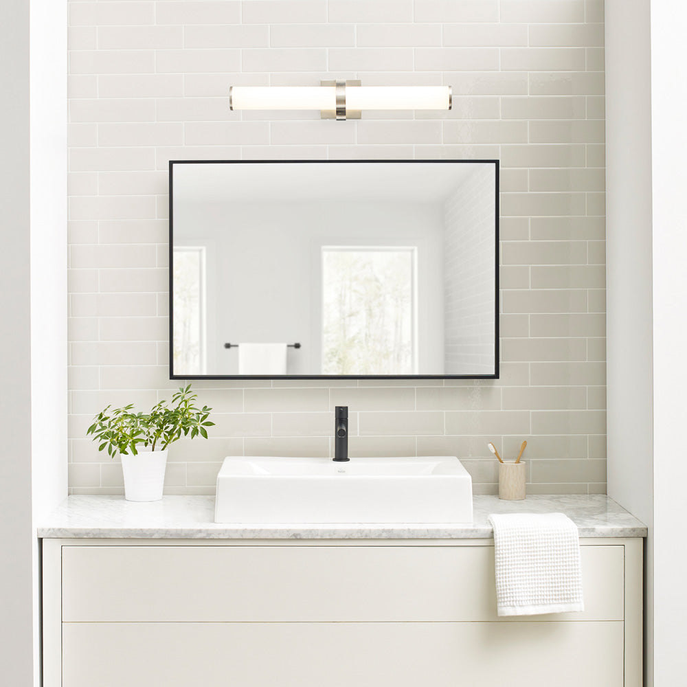 A sleek metal band and matching die cast end caps of the Lynk LED Bath Vanity Light from Visual Comfort Modern embrace a rounded acrylic shade to seamlessly blends traditional and contemporary design. Offered in three finishes to complete the contemporary design. Antique Bronze, Chrome and Satin Nickel. Can be mounted horizontally or vertically. Additional sizes available with 12" long and 36" long. High CRI LEDs are used to provide the superior light quality necessary for vanity applications.