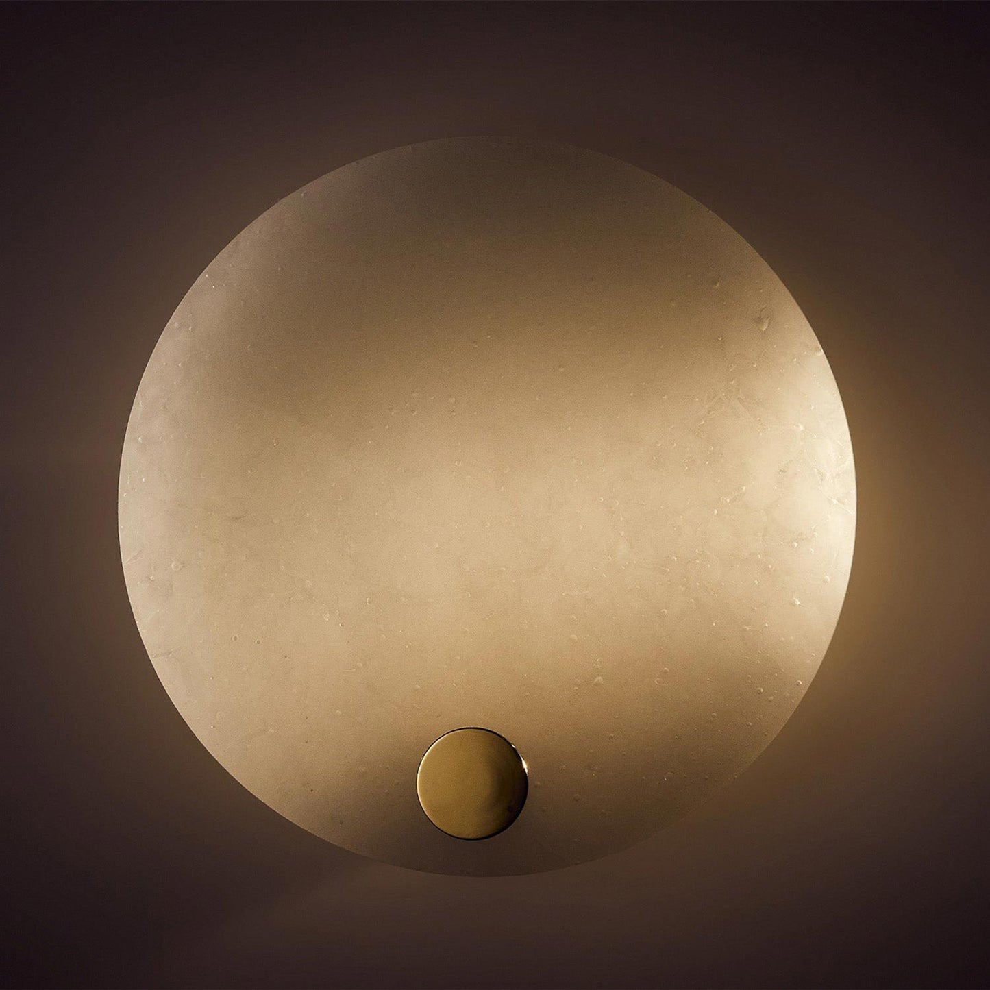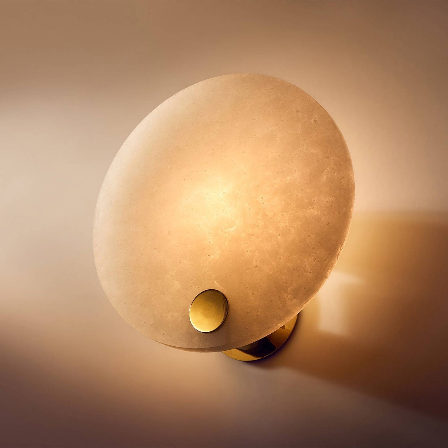 Indulgent artisan style and organic flavor create an irresistible fixture with minimalist roots. Perfect for a contemporary setting, the Magma Wall Light from Tala repurposes an earthy aesthetic with a round glass diffuser fashioned from upcycled solar panels. Surface-mounted for a flush appearance, its solid brass frame makes a subtle appearance, allowing dreamy illumination to completely change the mood in a living room or hallway.
