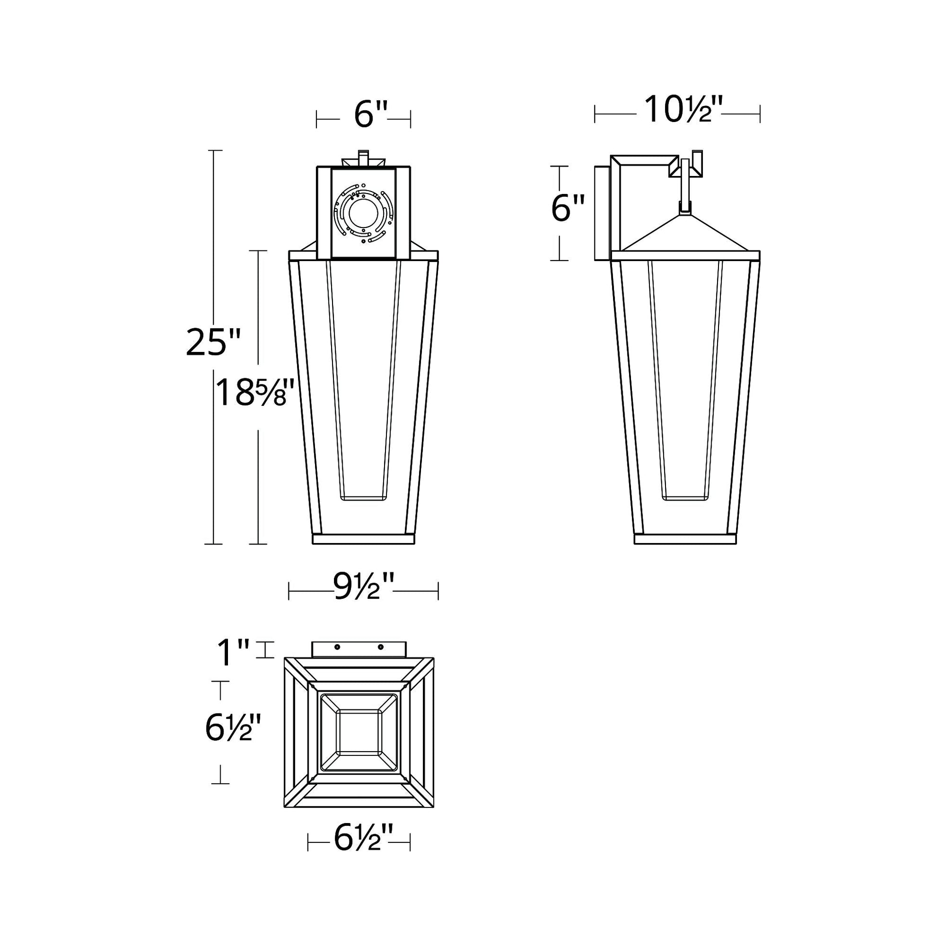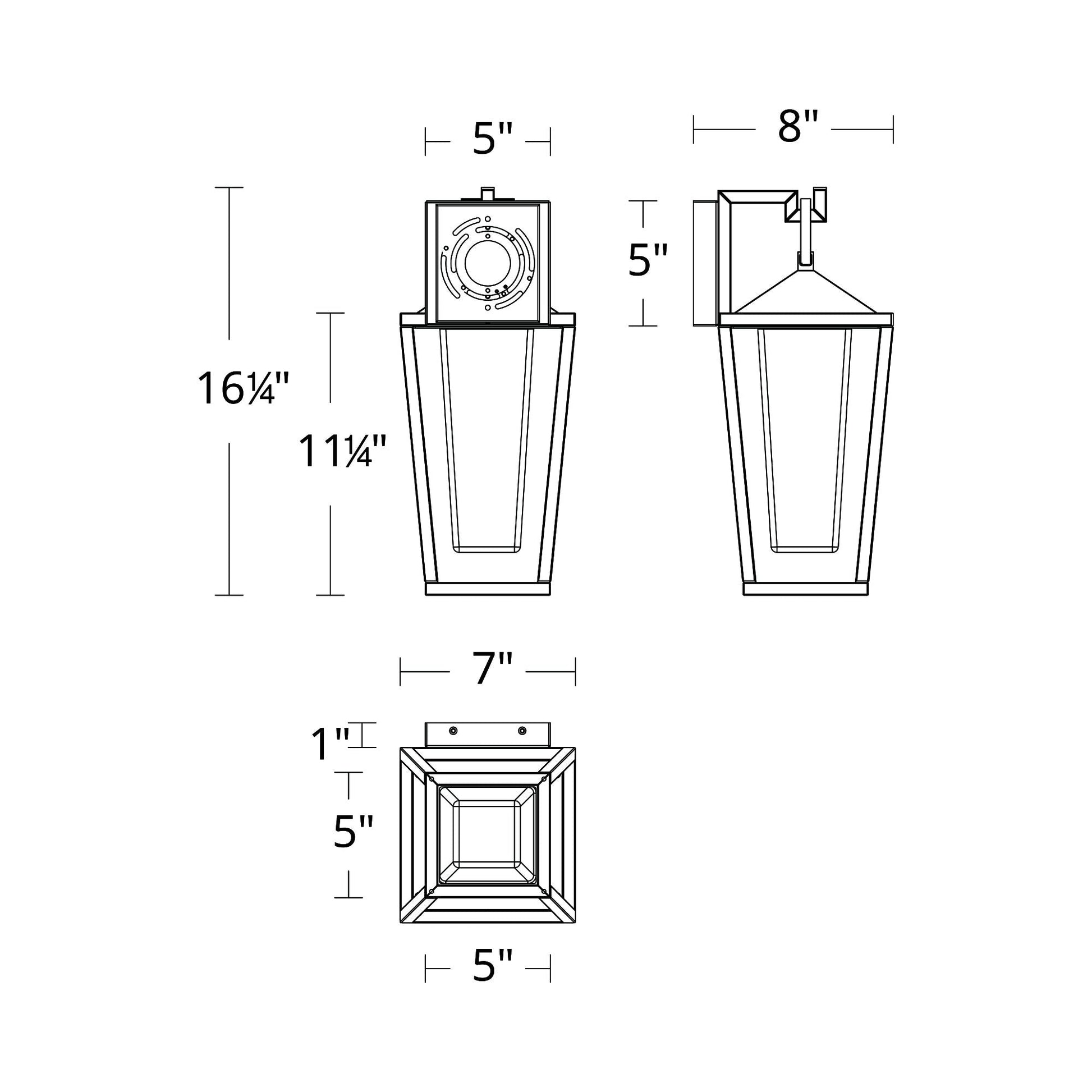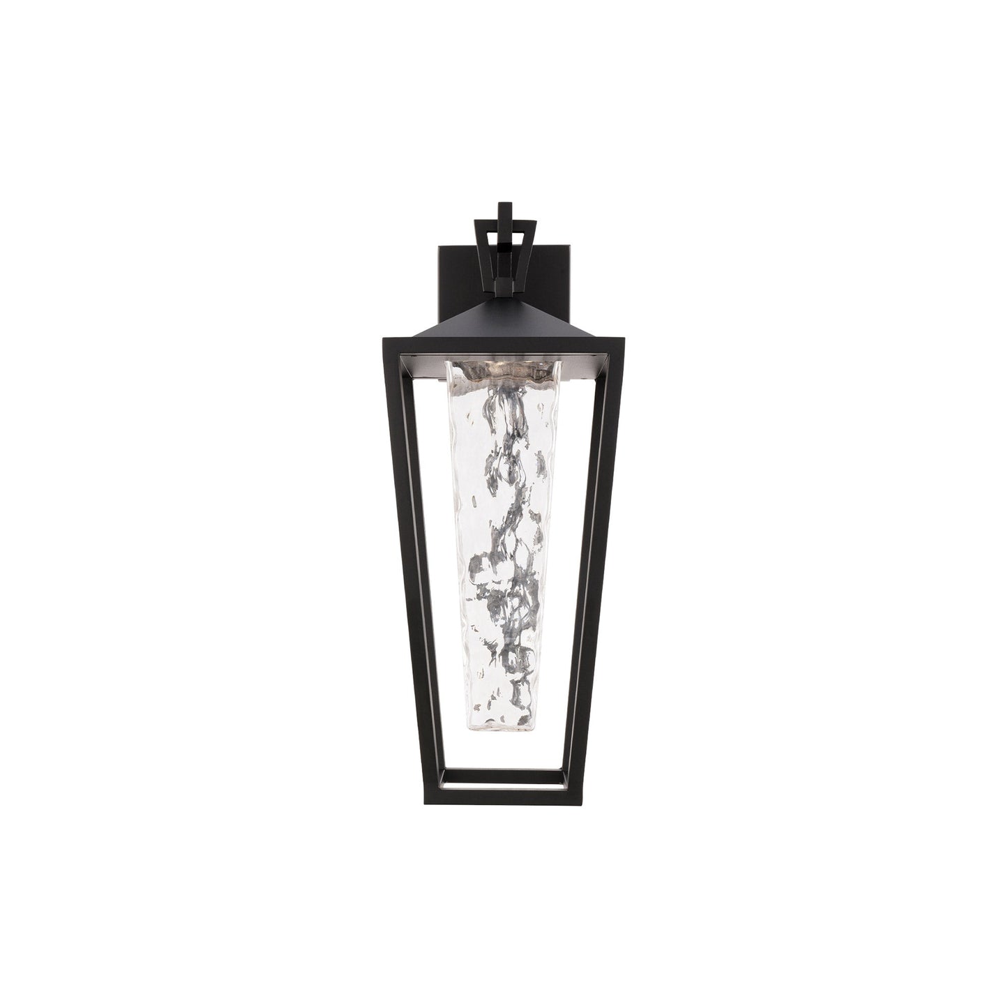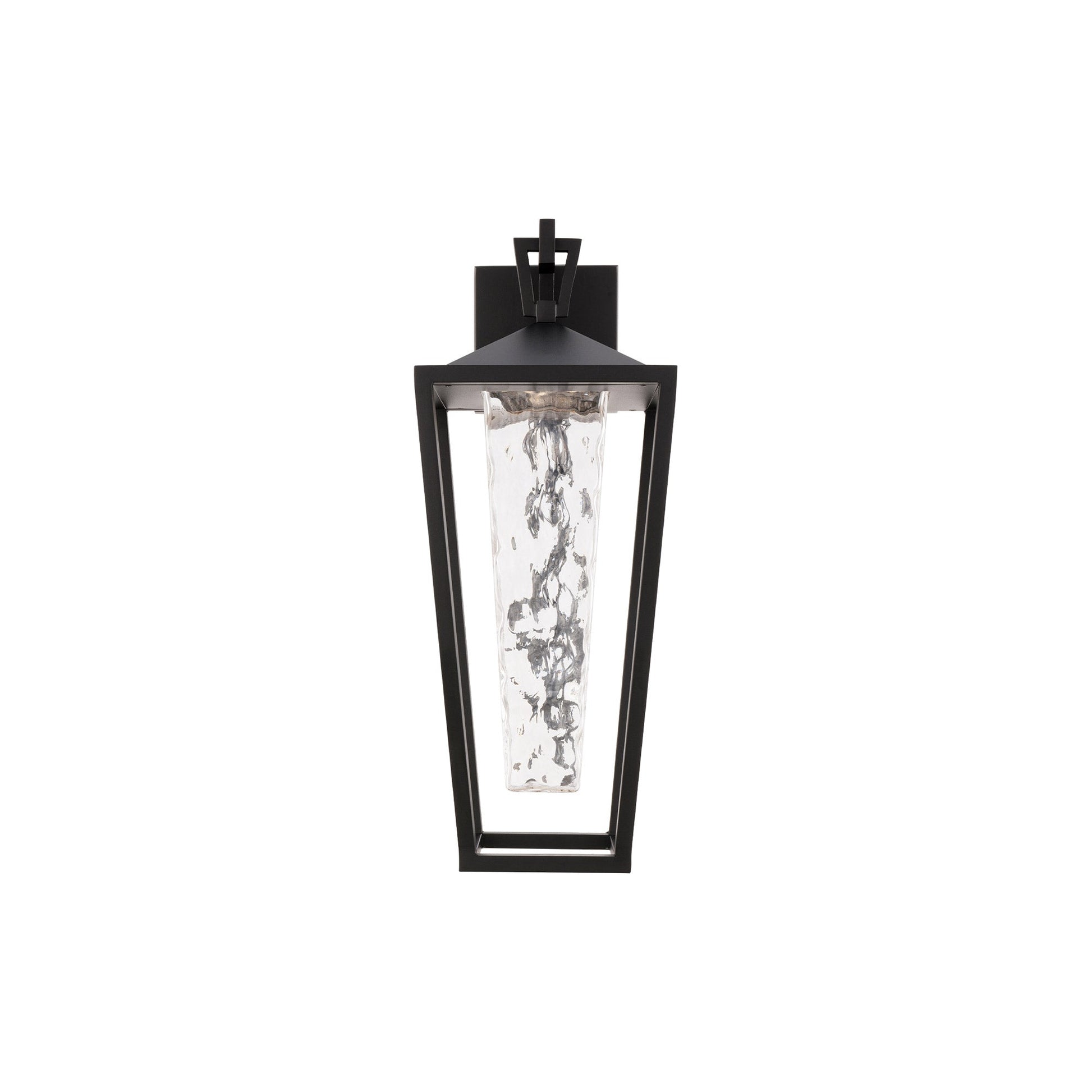 The Manchester Outdoor LED Wall Light from dweLED weaves together old and new elements, expanding a tasteful motif that sends energy-efficient illumination through a back yard, deck, or pool house setting. Bold powder coated finish calls out a sleek tapered lantern-inspired silhouette, nestling an equally tapered glass shade with a dramatic textured flavor.