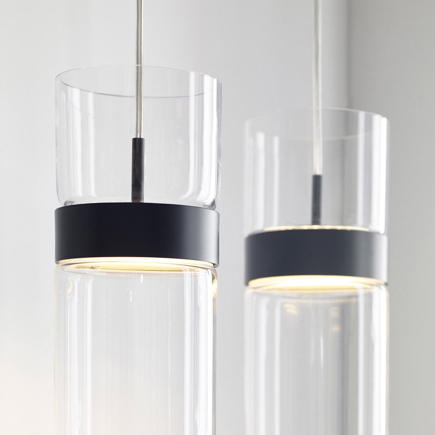 The Manette Grande LED Pendant Light by Sean Lavin for Visual Comfort Modern is an elevated version of the classic cylinder pendant. With its simple cylindrical design and added sleek metal bands, the Manette Grande exudes style and simplicity. This hand-blown pendant can be customized via several color combinations to match your unique preferences. Available color options include Clear, Smoke, White and Transparent Smoke. Three on-trend hardware finishes are available along with your choice of energy efficient LED lamps. Due to its larger size, the Manette Grande is ideal for kitchen island task lighting, dining room lighting and home office lighting applications. Your choice of 5 upper and lower glass and acrylic color combinations allow opportunity for incredible personalization. LED light sources fire simultaneously up and down to evenly illuminate the glass while contributing both direct and indirect illumination.