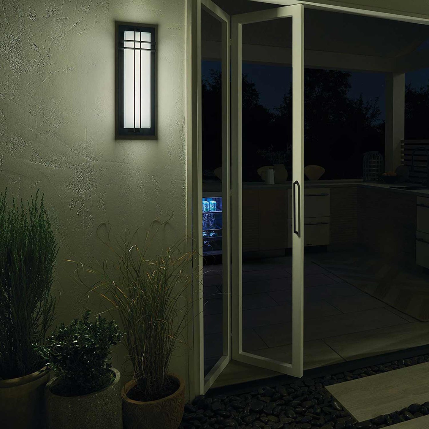 The Manhattan Outdoor LED Wall Light is an homage to the art deco lines and booming skyscrapers of the 1950s and 60s. The textured black finish provides a balanced contrast to the white glass.