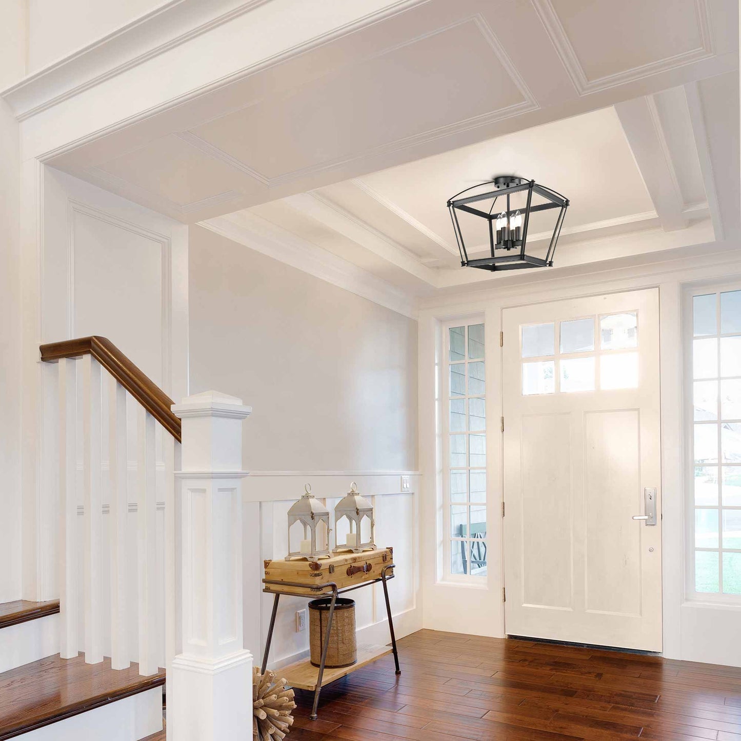 Inspired by elements of classical architecture blended with old fashioned street lantern silhouettes, the Manor Semi Flush Mount Ceiling Light from Alora Lighting is sure to capture attention over any living space.