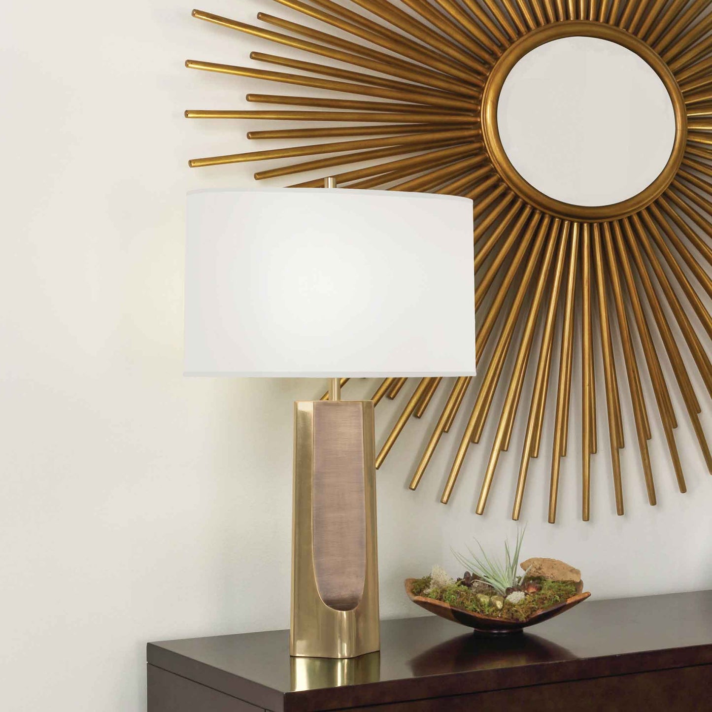 Sculpting and dimensionality deliver a sensual impact to the design of the Margeaux Table Lamp from Robert Abbey, offering a boost to contemporary seating ensembles, tables, and bedrooms in custom modern spaces.