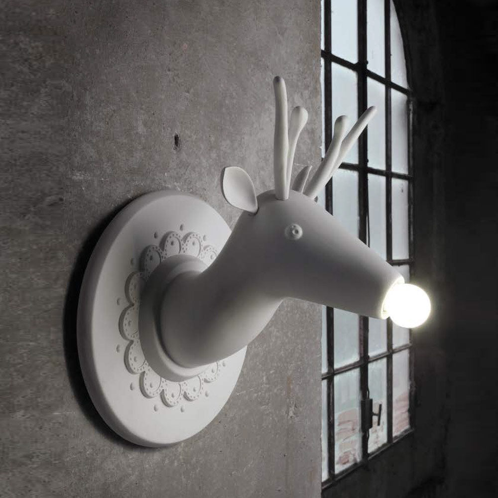 Whimsical and delightful, the Marnin Wall Light from Karman features a reindeer-inspired sculpture mounted on a round base with frilly charming details. Naturally, the LED nose of the animal lights up for a jovial touch.