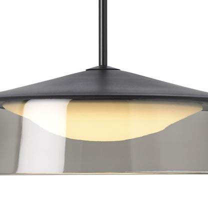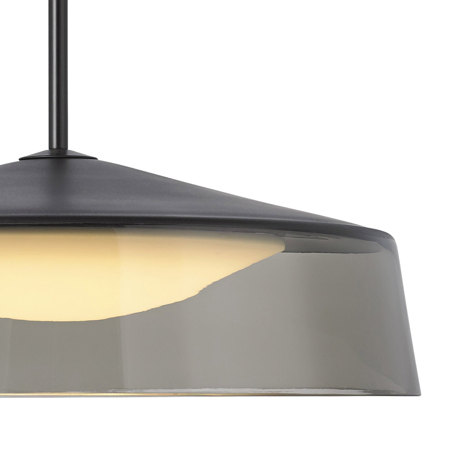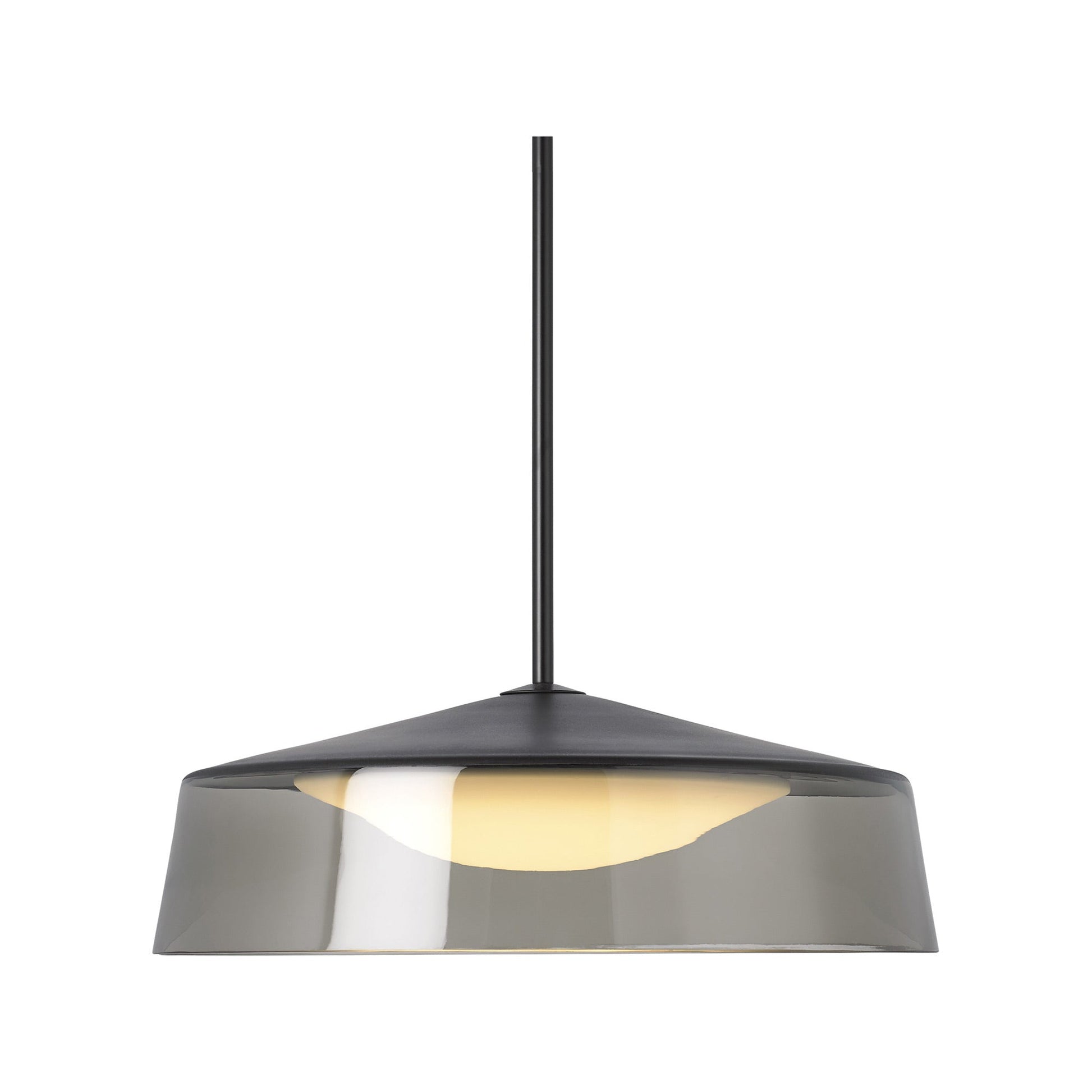 Scale and sophistication meet beautifully in the Masque Grande LED Pendant Light from Visual Comfort Modern. This mid-century style modern pendant has been meticulously hand-painted at the crown adding a unique polished element to the hand-blown shade. A gently curved diffuser inside evenly distributes the output of the LED light source. Three modern colors, three hardware finishes and multiple LED options allow for specific customization. Scaling at 6” long and 18” in diameter, the Masque Grande LED Pendant Light makes a bold yet sophisticated statement in dining room applications, over kitchen islands as task lighting and countless commercial applications. Its gently curving diffuser evenly distributes the output of the LED light source.