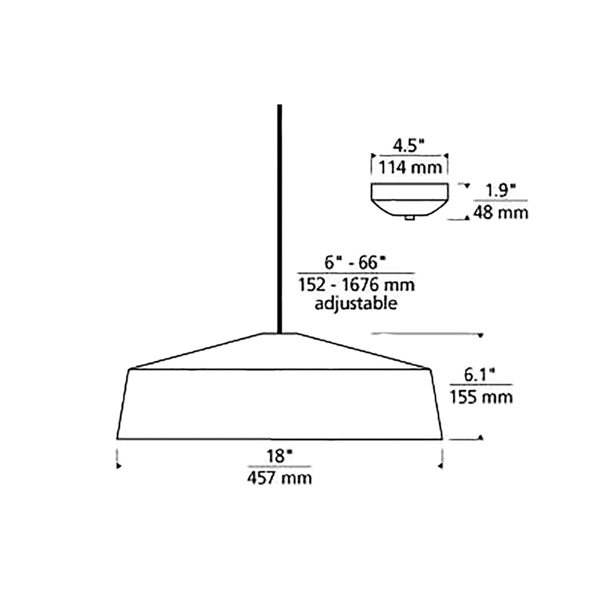 - Dimensions: 18"D X 6.1"H; 74" max height