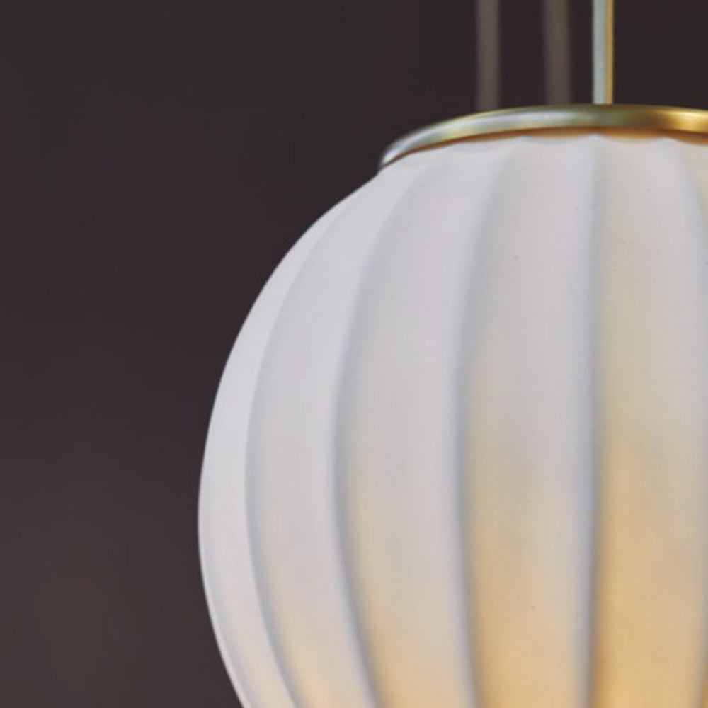 The Mei Pendant Light from Carpyen explores the design quotient of an Asian-inspired motif, simple and elegant with dimensionality at its core. Floating from a long suspension cable is a decadent and shapely ribbed ceramic shade, with delicate porcelain fashioning an effective diffuser tempering illumination for a romantic mood.