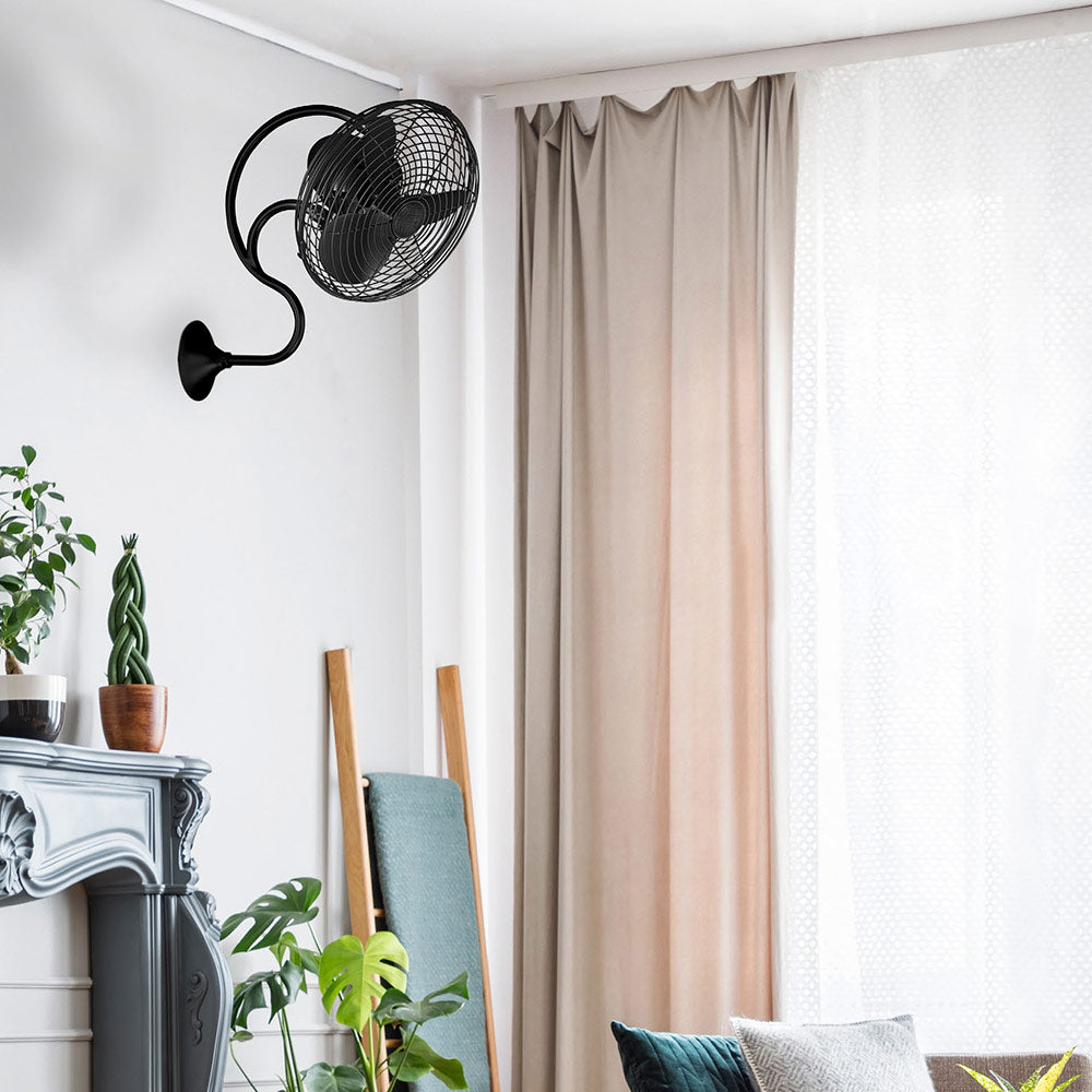 A boldly arched gooseneck and vintage style make the Melody Indoor / Outdoor Wall Fan from Matthews Fan Company a stylish addition to any room.