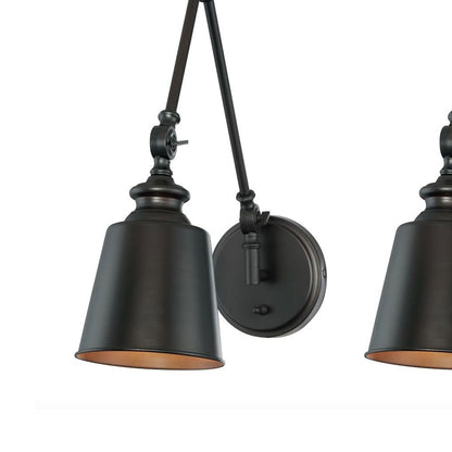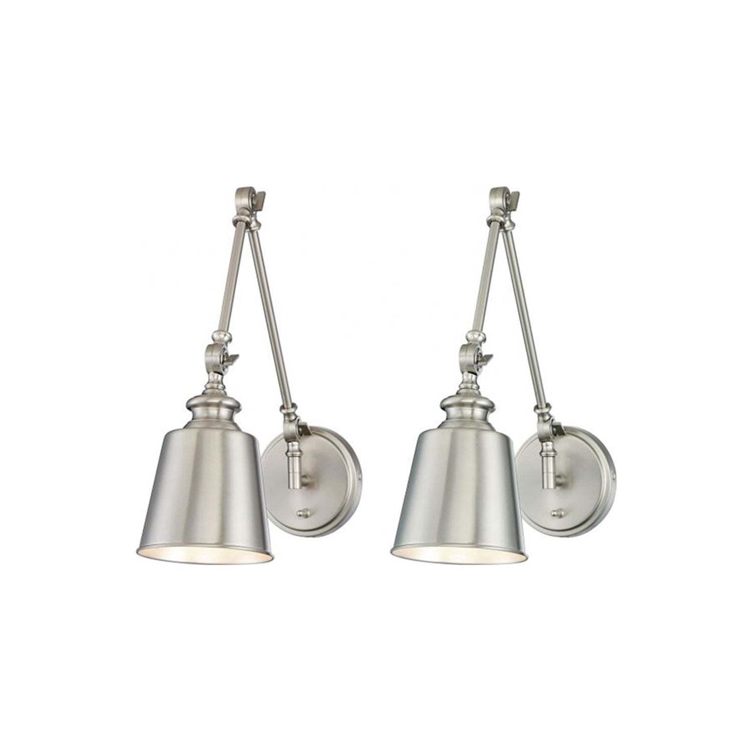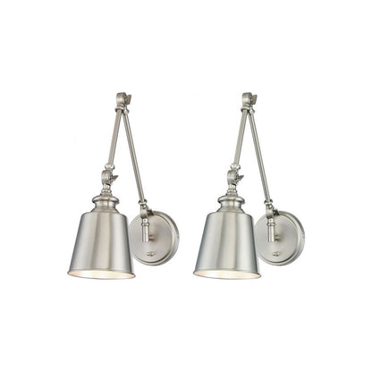 Double the utility and fashion of lighting in a custom space with this set of two light fixtures created for impact. The Meridian M90089 Adjustable Wall Light - Set of 2 from Savoy House echoes storied industrial-era attitude with creative detail and construction of classic metal. These wall lights deliver ambient illumination at customized levels and angles thanks to fully adjustable arms and cooperative joints, making this set ideal for use in a reading space or workspace.