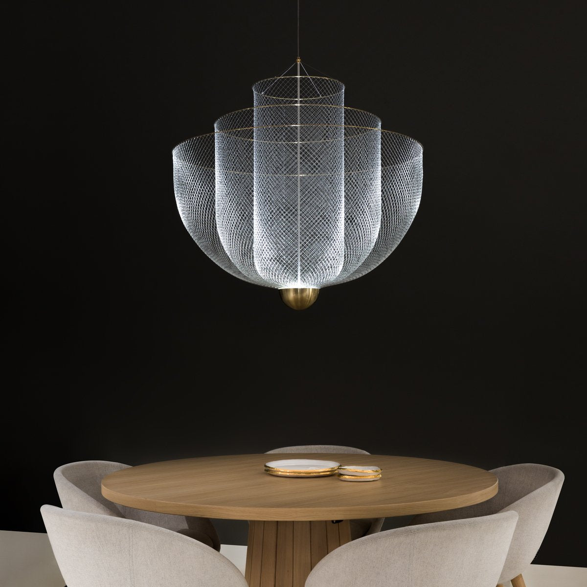 Three tiered layers captivate in the design of the Meshmatics LED Chandelier from Moooi. Placed in a foyer or suspended above a dining room table, it provides an exceptional illumination offered by energy efficient lighting.