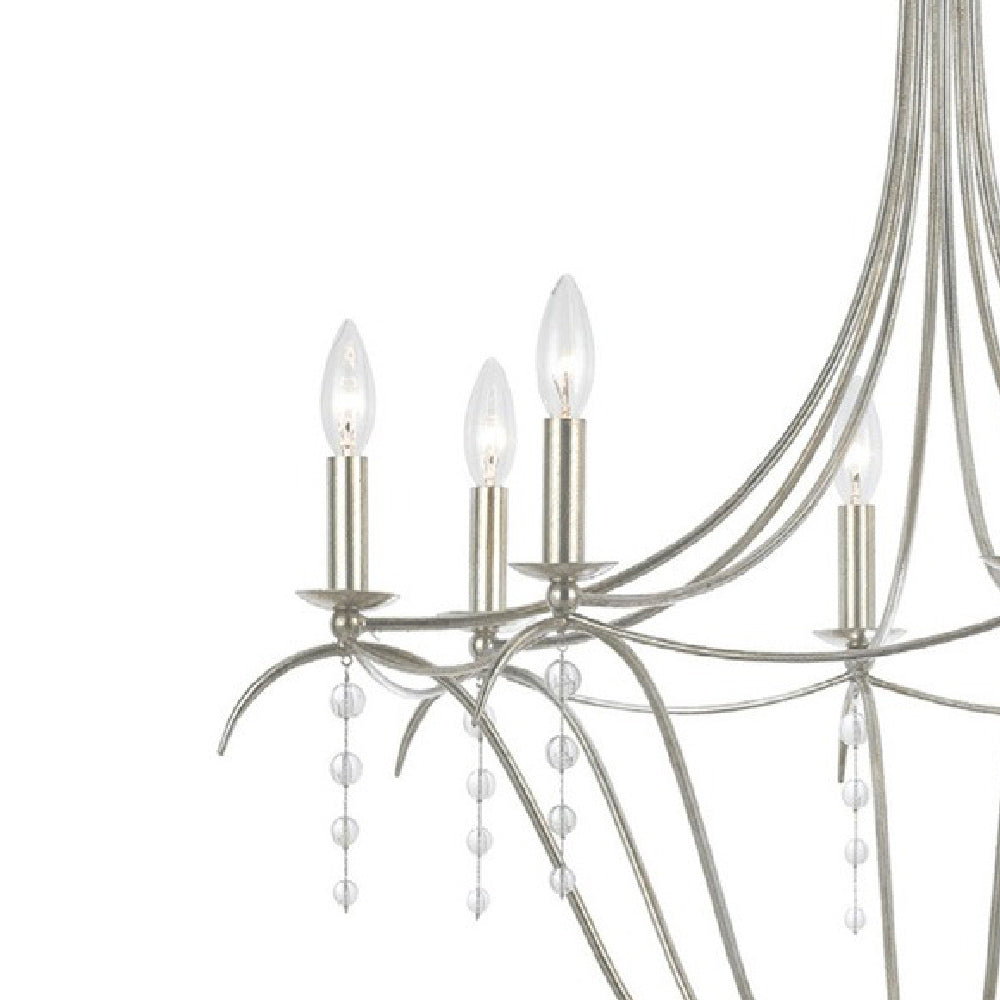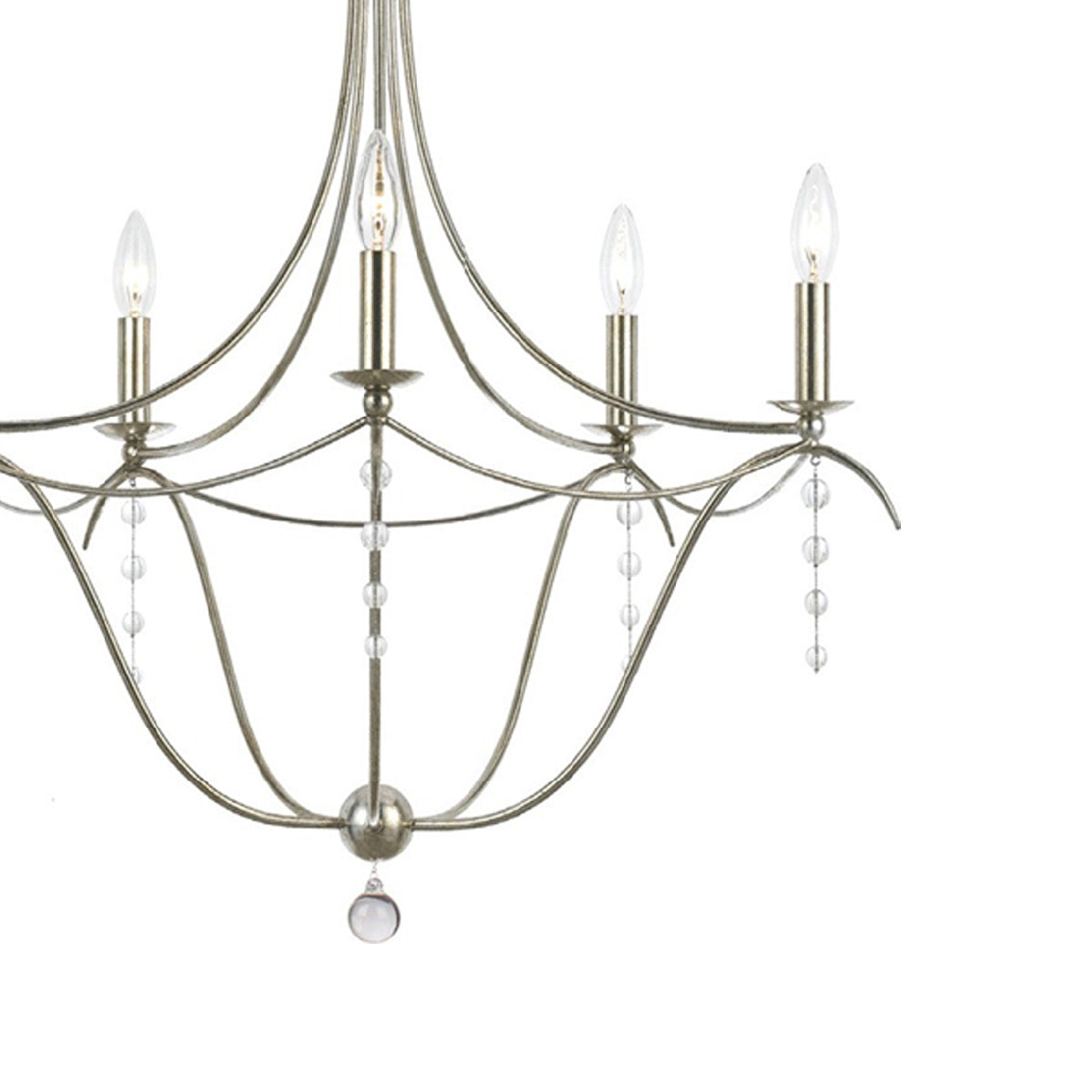 A measured dose of glam embraces slender openwork metal framing to offer a gallery-inspired fixture perfect for modern living areas and foyers. Sweeping curves are sparse yet impactful as the Metro Clear Glass Chandelier from Crystorama puts candelabra lights on full display, with delicate glass beads reflecting illumination and embellishing its luxurious feel.