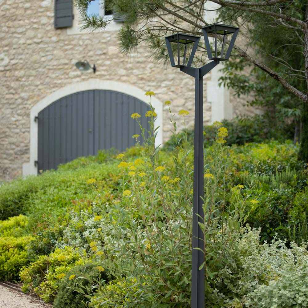 A repurposed classic lantern silhouette reflects updated artistry and a commitment to stylizing outdoor spaces. The Metro Outdoor Solar LED Park Light from Les Jardins exaggerates elements of simple lantern aesthetics in its aluminum-crafted frame. Take advantage of renewed charging and energy-efficiency through a solar element to stay true to an eco-friendly lifestyle.