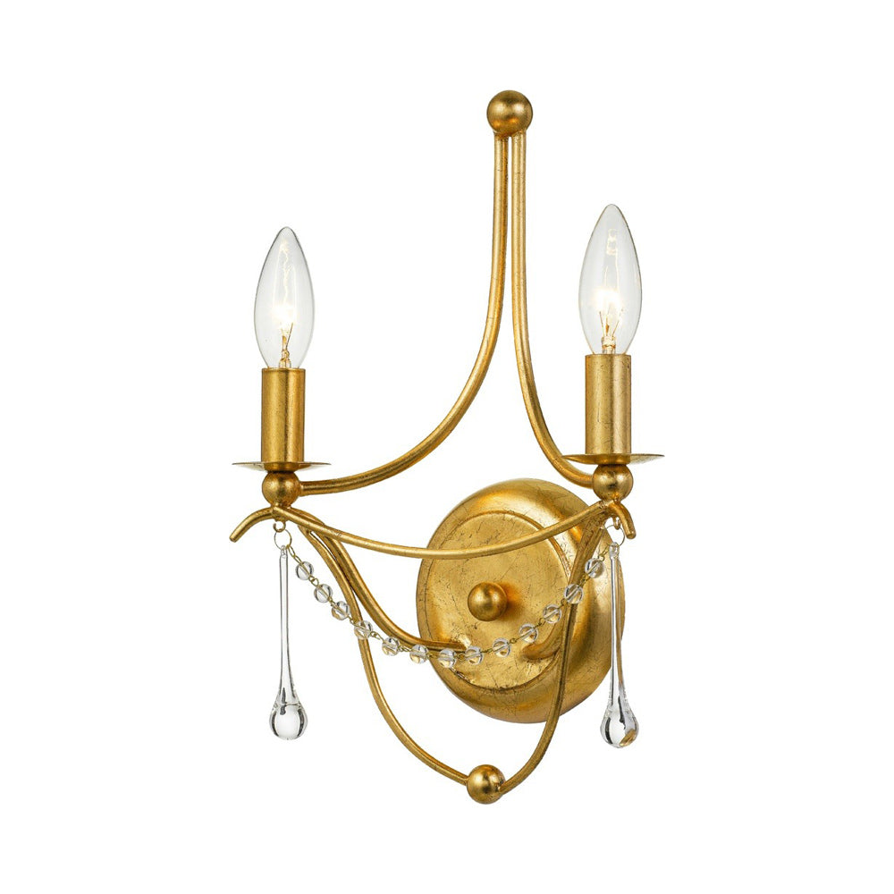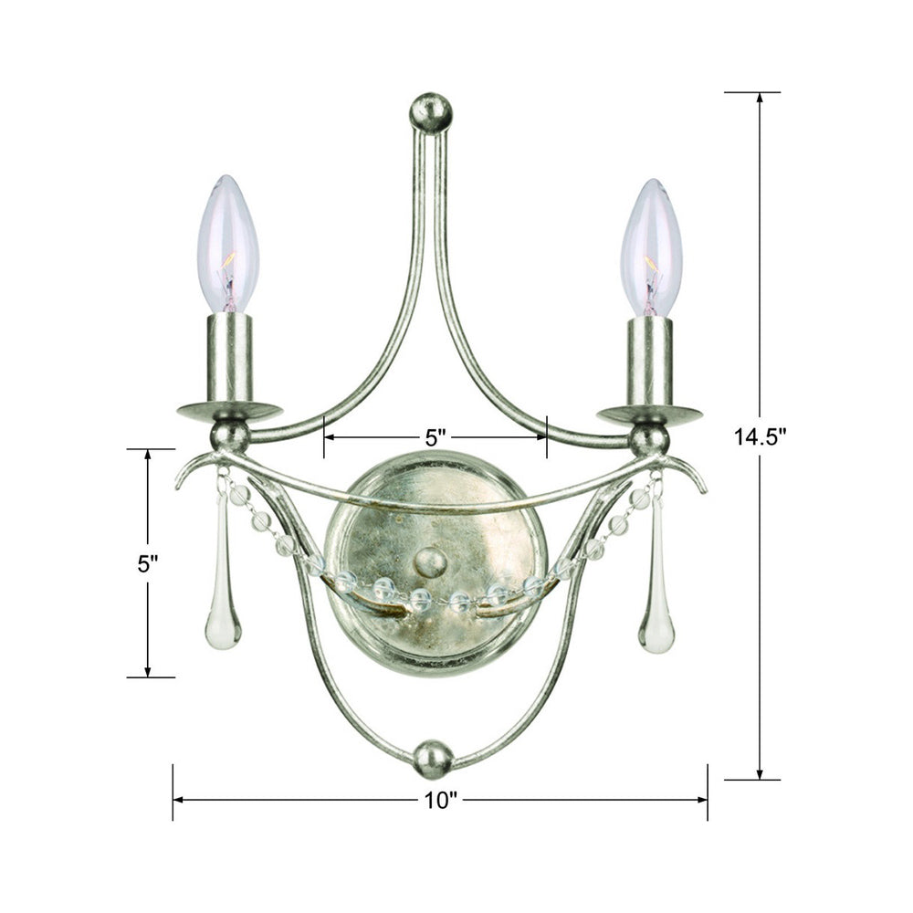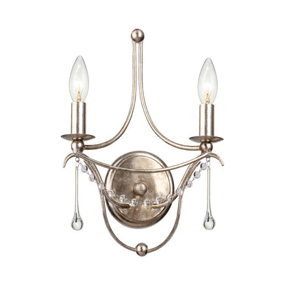 Traditional artistry takes a turn toward modern glam in a light fixture that highlights a focal point in any setting. Take in the delicate and fluid silhouette of the Metro Wall Light from Crystorama and absorb the careful design detail and measured use of gleaming metal. Candelabra lights offer accent lighting, with chic teardrop glass beads becoming the star of the show.