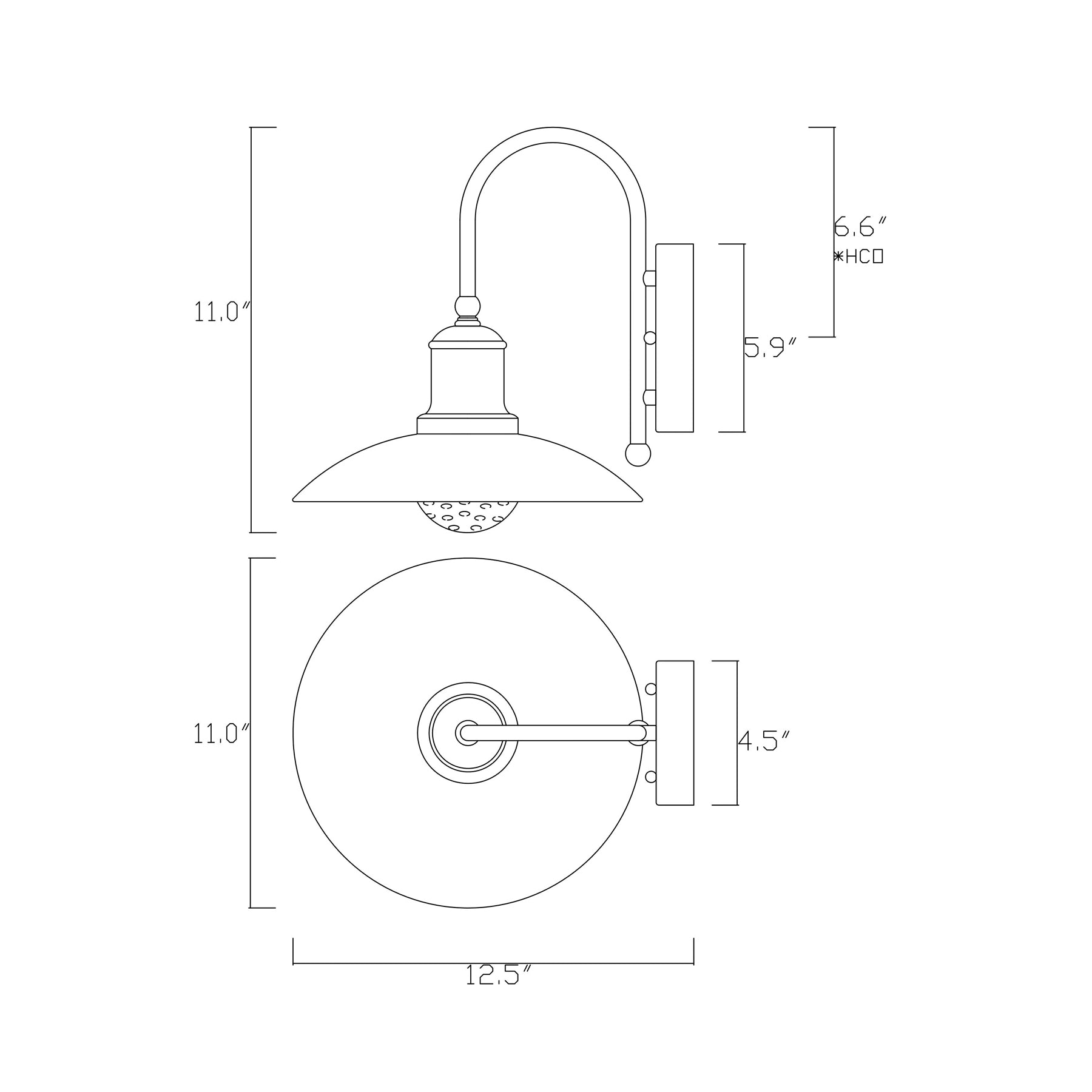 - Dimensions: 11"W X 11"H; 12.5" Extension