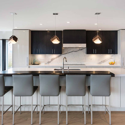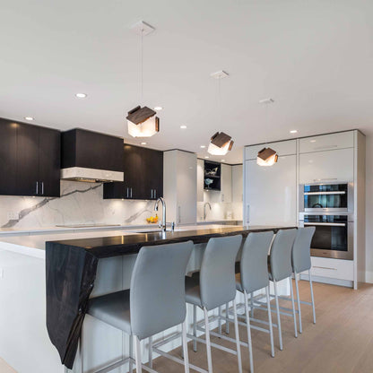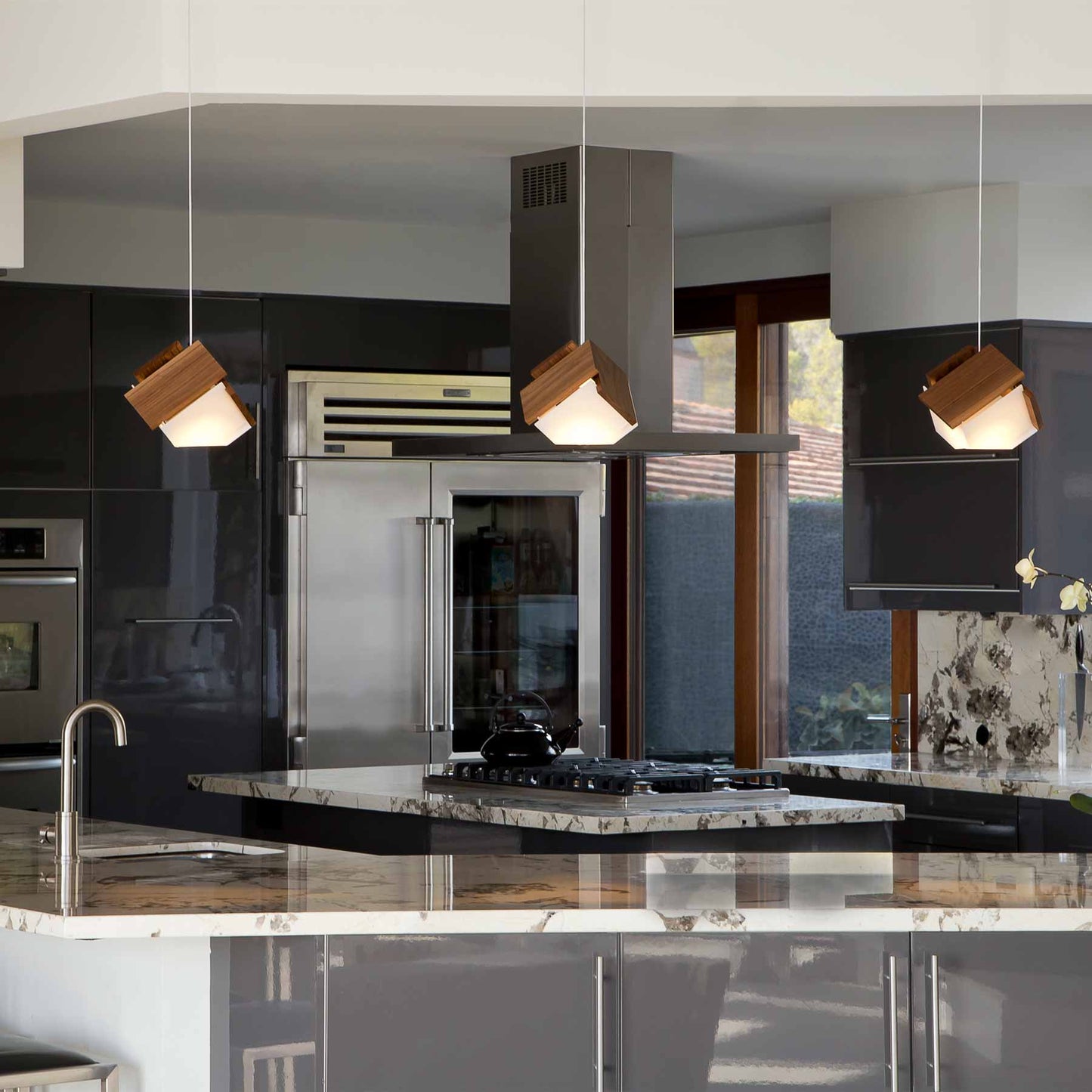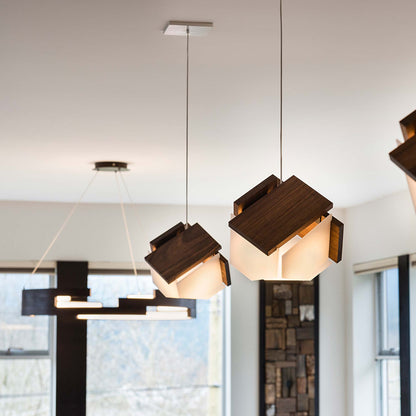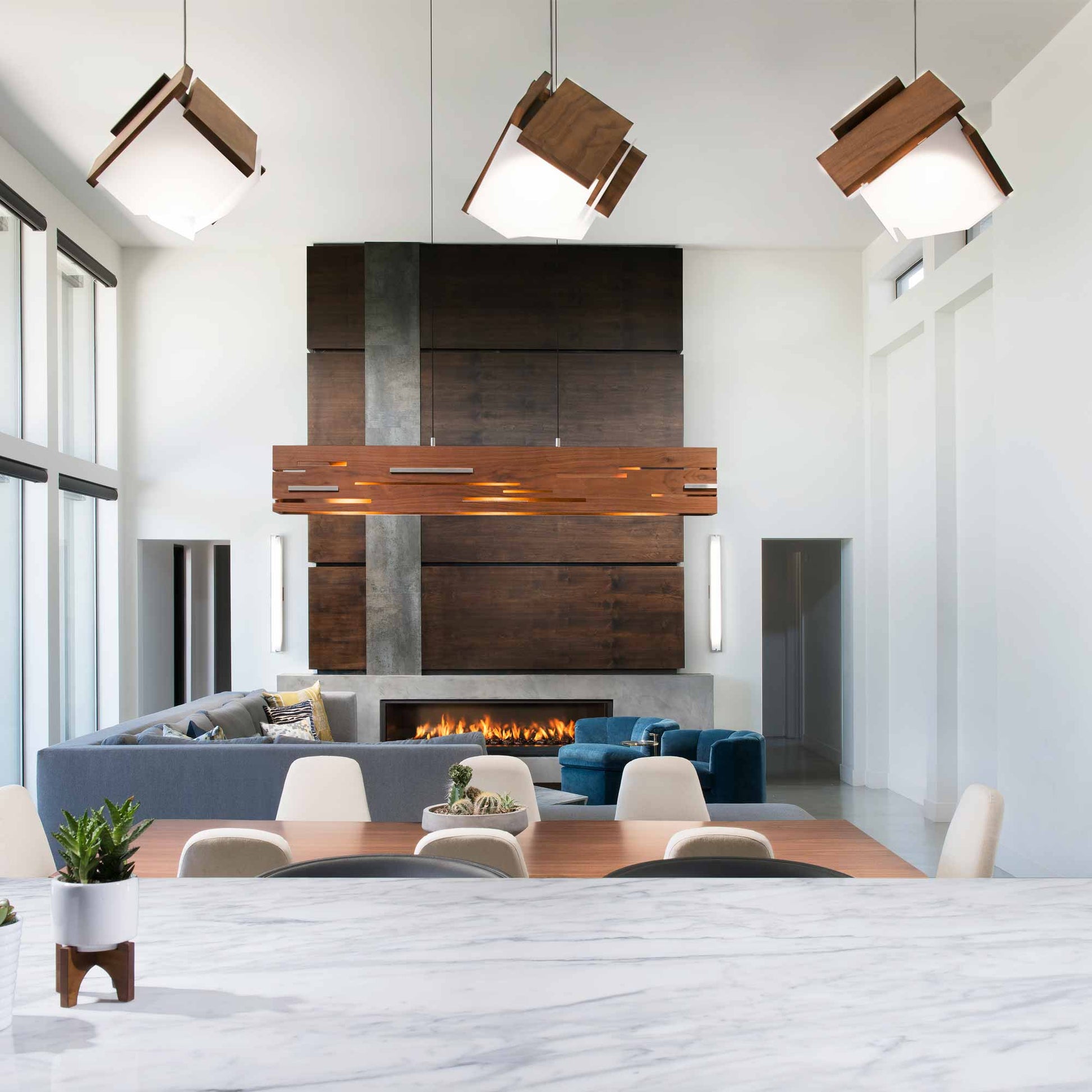 Go abstract to drive home a chaotic, rustic flavor, placing the Mica Pendant Light from Cerno in a casual living space. Pieced elements blend solid wood and polymer to accent a custom design scheme with geometric energy.