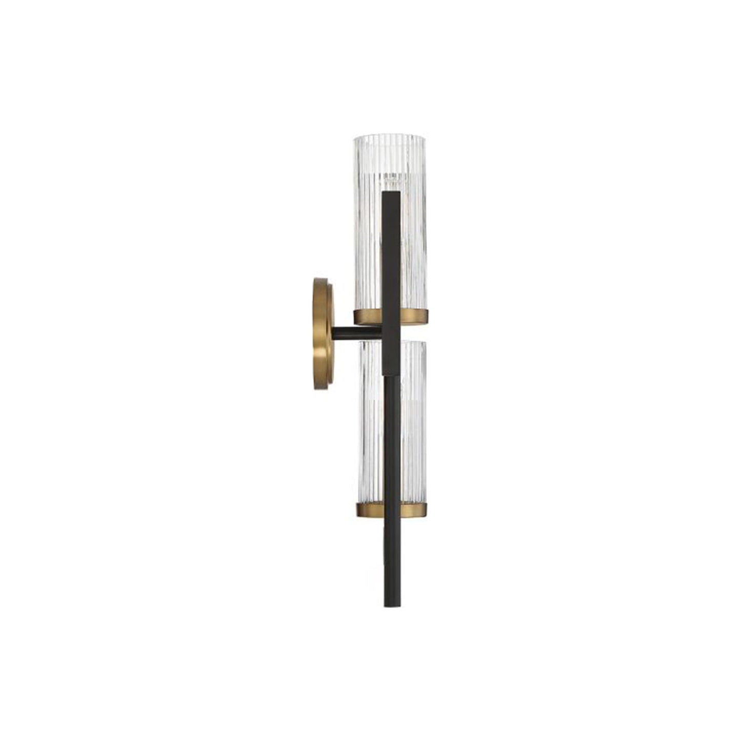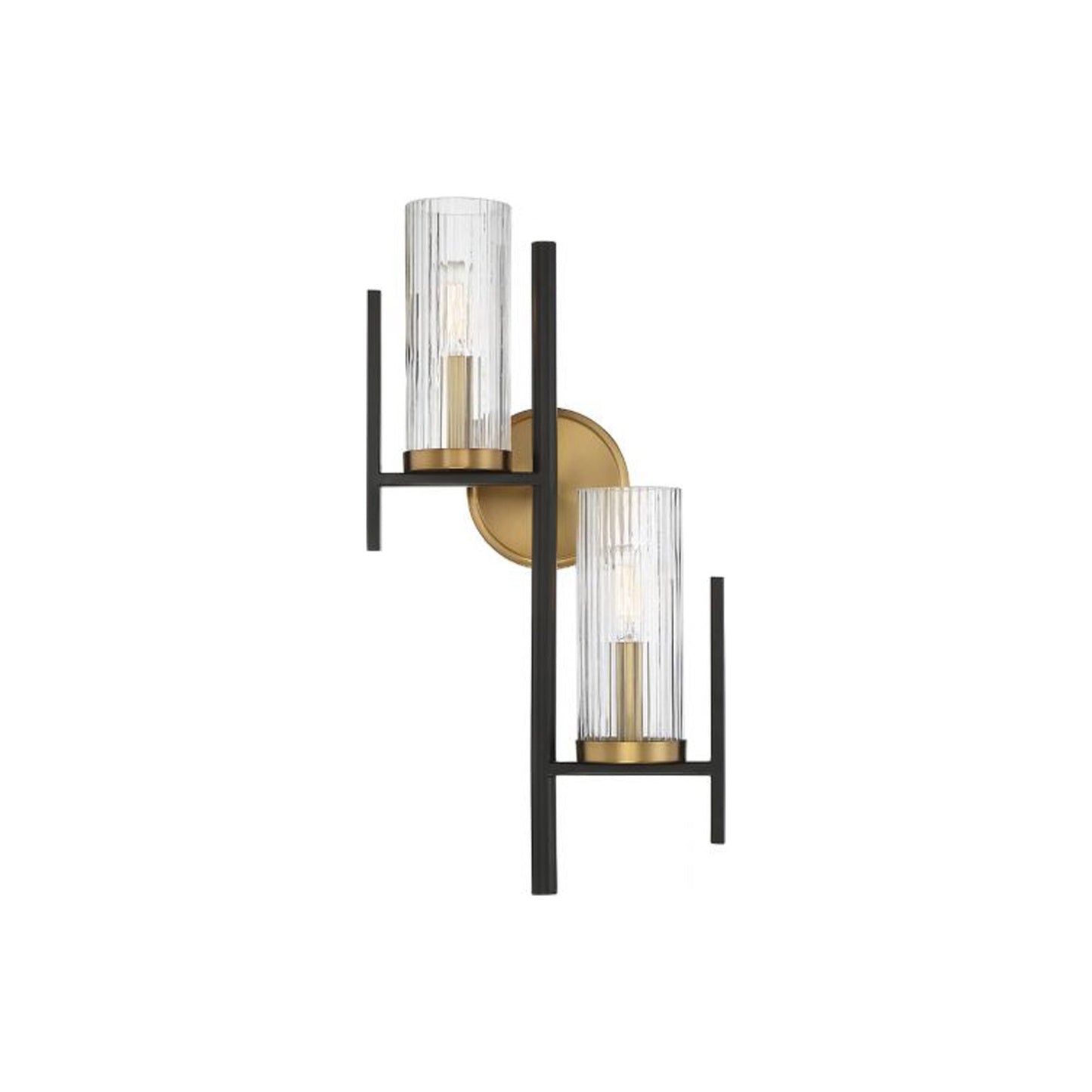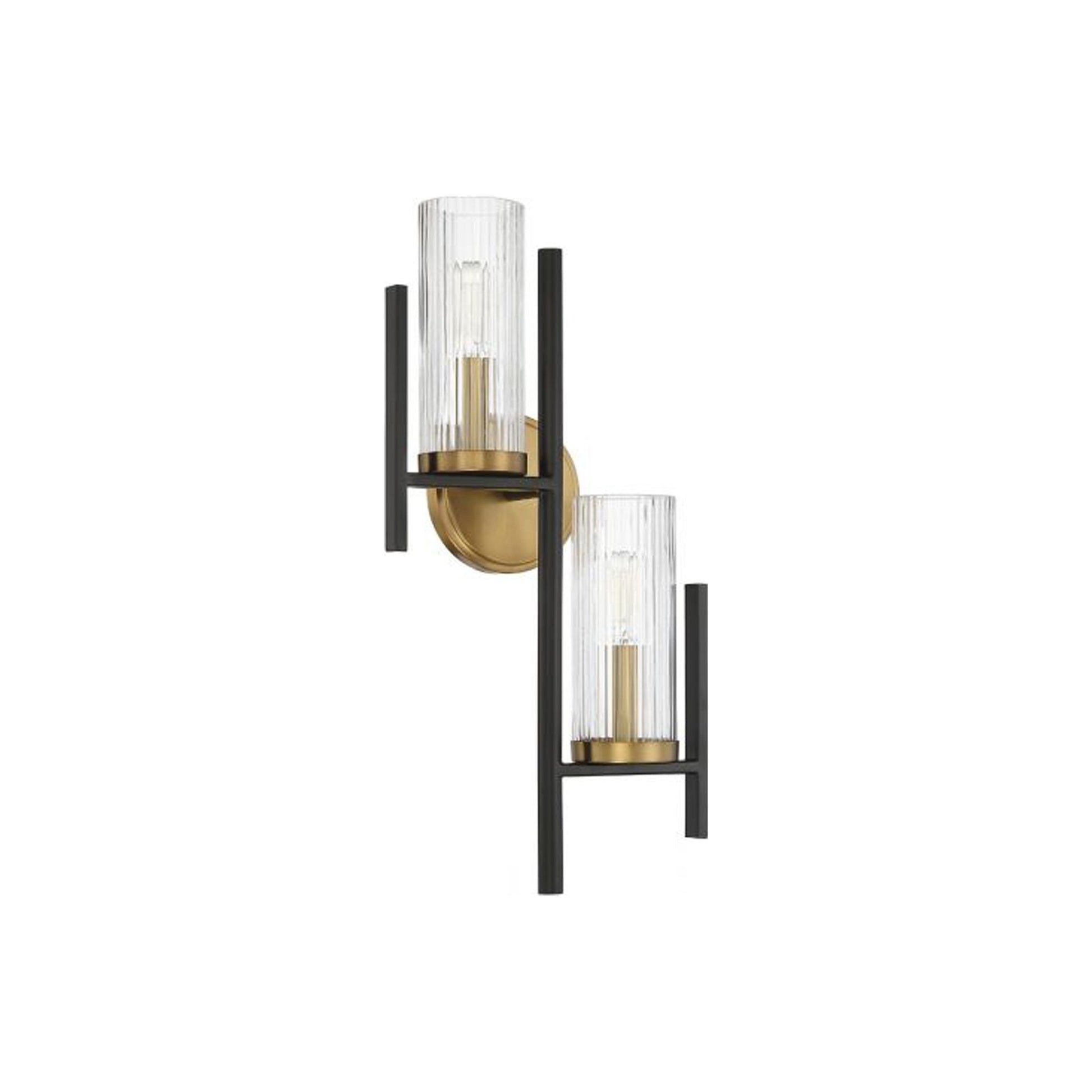 Take a page from classic Mid-Century Modern style in the Midland Wall Light from Savoy House, an inspired fixture designed with an energetic vibe in mind. Asymmetry pairs clear ribbed glass cylinder shades with the clean lines of matte black finish metal framing, both embellished with sleek warm brass accents. This fixture delivers an artisanal version of industrial aesthetics.