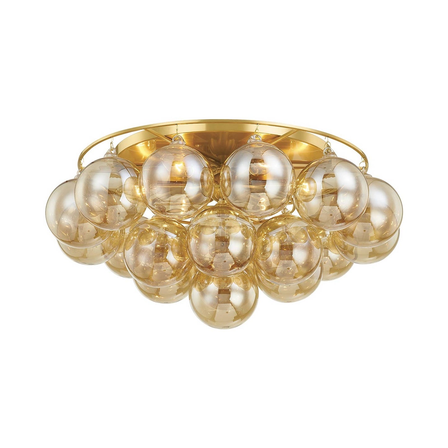 Champagne glass globes bring bubbly, effervescent personality to the sophisticated Mimi Flush Mount Ceiling Light from Mitzi. Gorgeous in a bedroom or breakfast nook, it delivers airy, elegant appeal to a true statement piece. Aged brass is a perfect complement to the glass, creating warmth for any room.