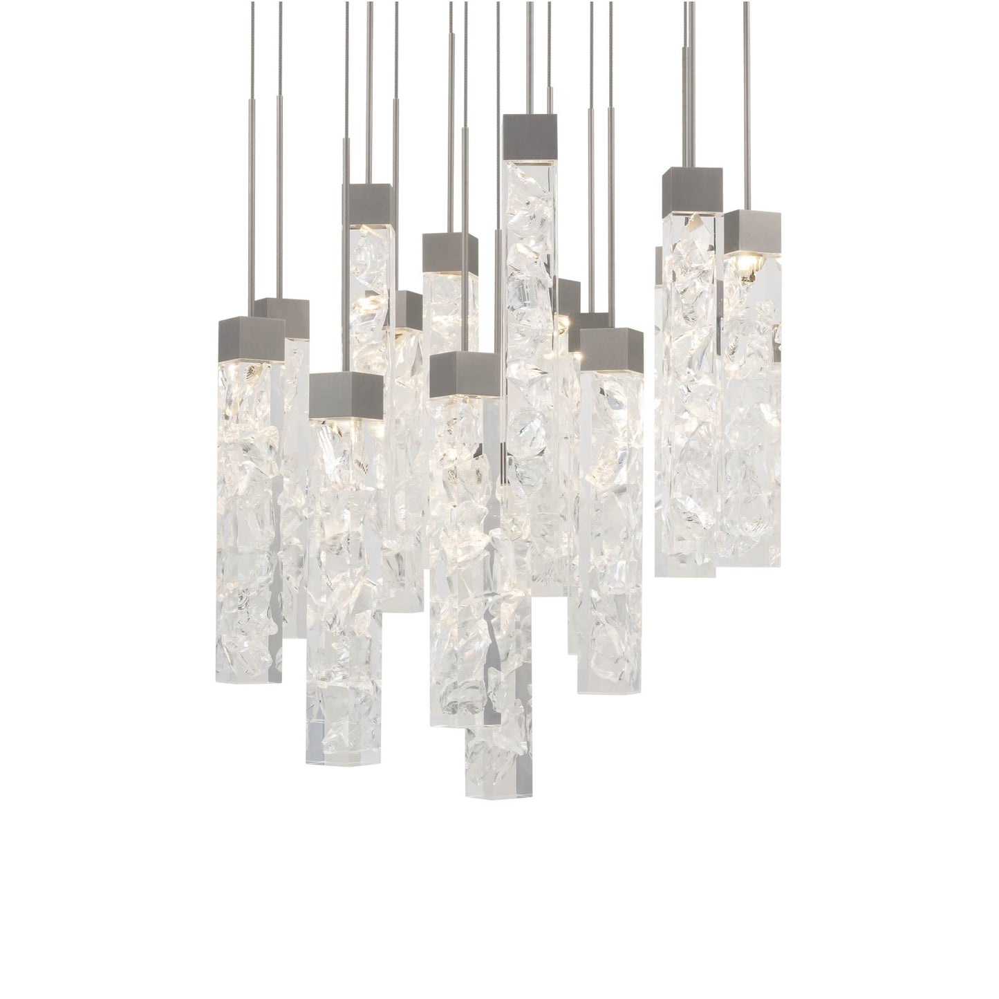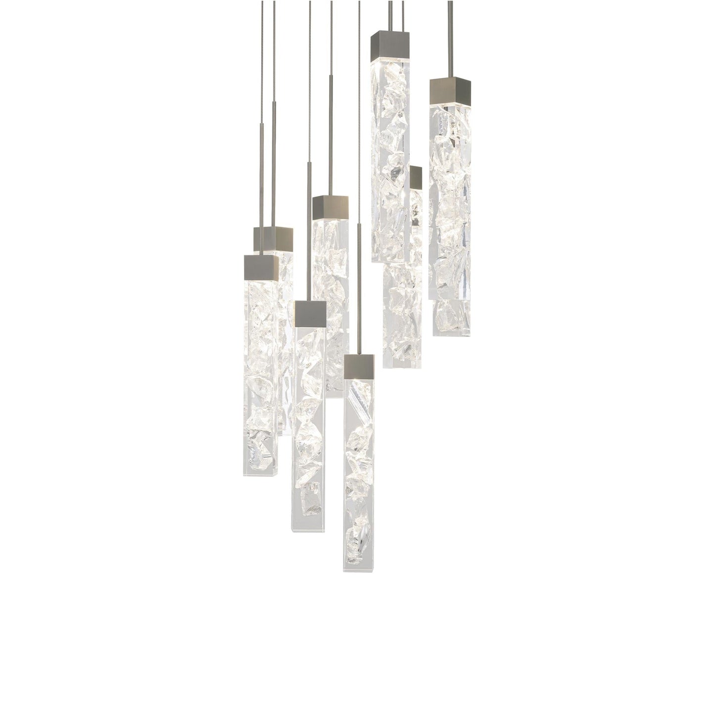 Elegance finds its home in a simply styled light fixture adding artisanal simplicity in a custom space. The Minx LED Multi Light Pendant Light from Modern Forms dazzles with cascading reclaimed crystal shades and sleek metal accents, forming a linear silhouette and embellishing a compact setting with energy-efficient lighting and gallery influence.