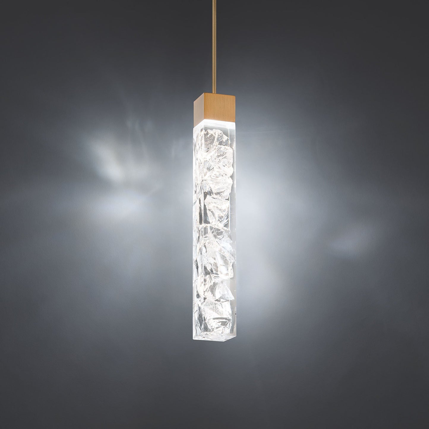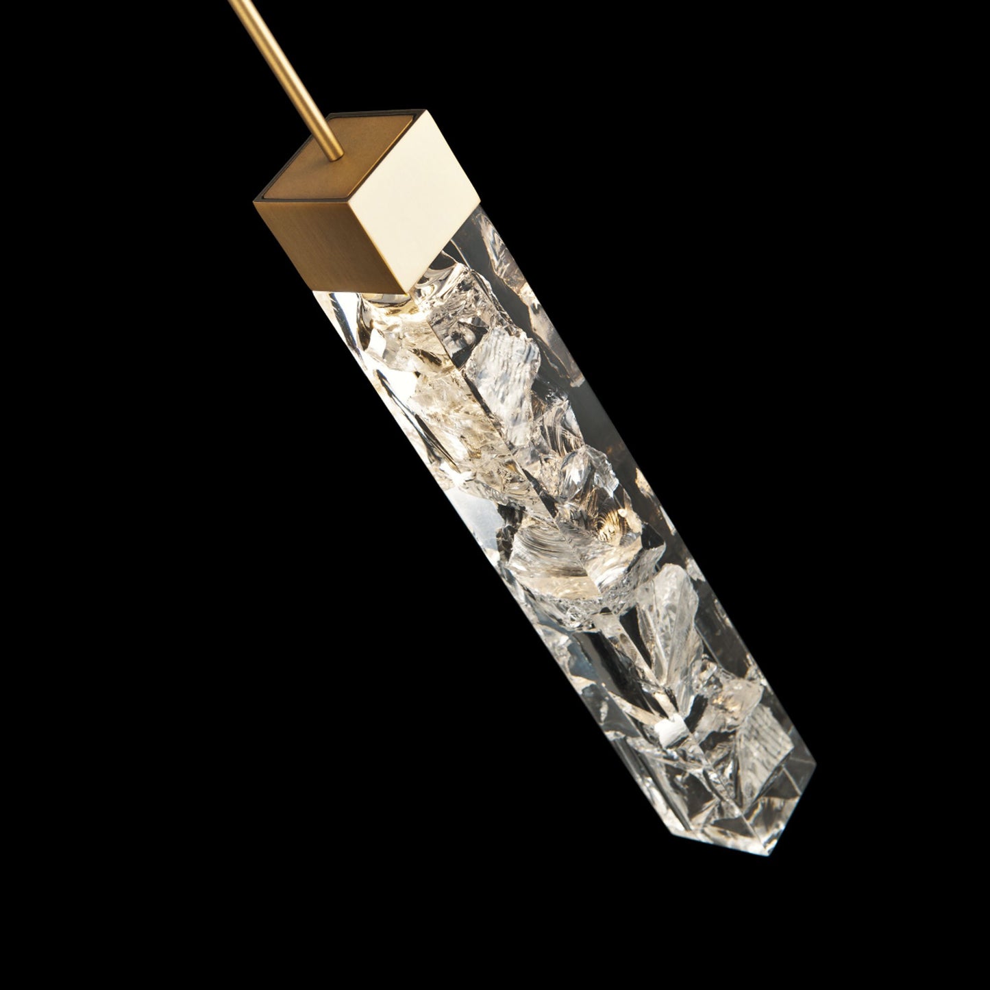 Elegant artisanal sparkles. Held aloft, long-lasting LEDs provide functional down lighting. A sleek mini pendant that works by itself or in multiples.
