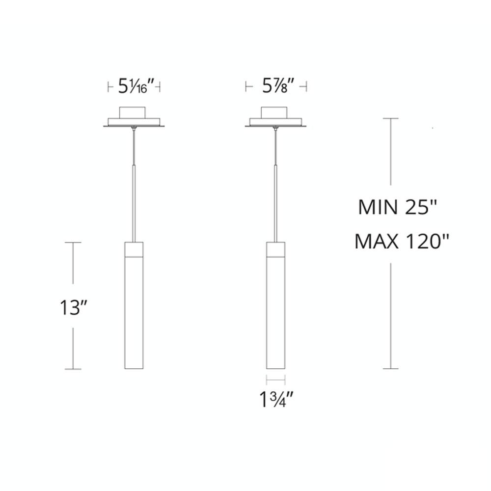 - 1-Light: 1.75"W X 13"H; 120" max height