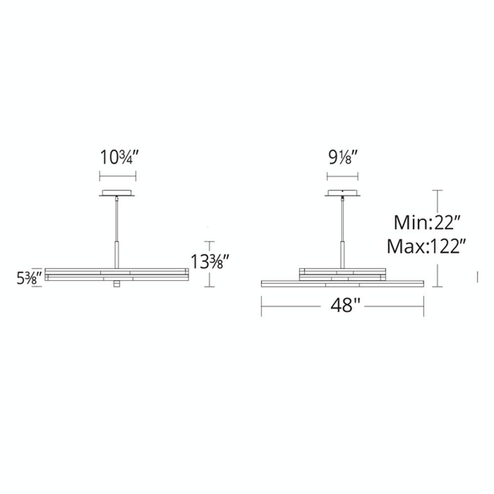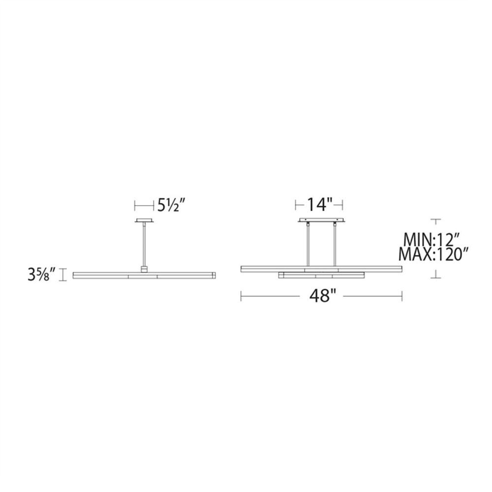 - 4-Light: 48"W X 3.56"H; 120" max height