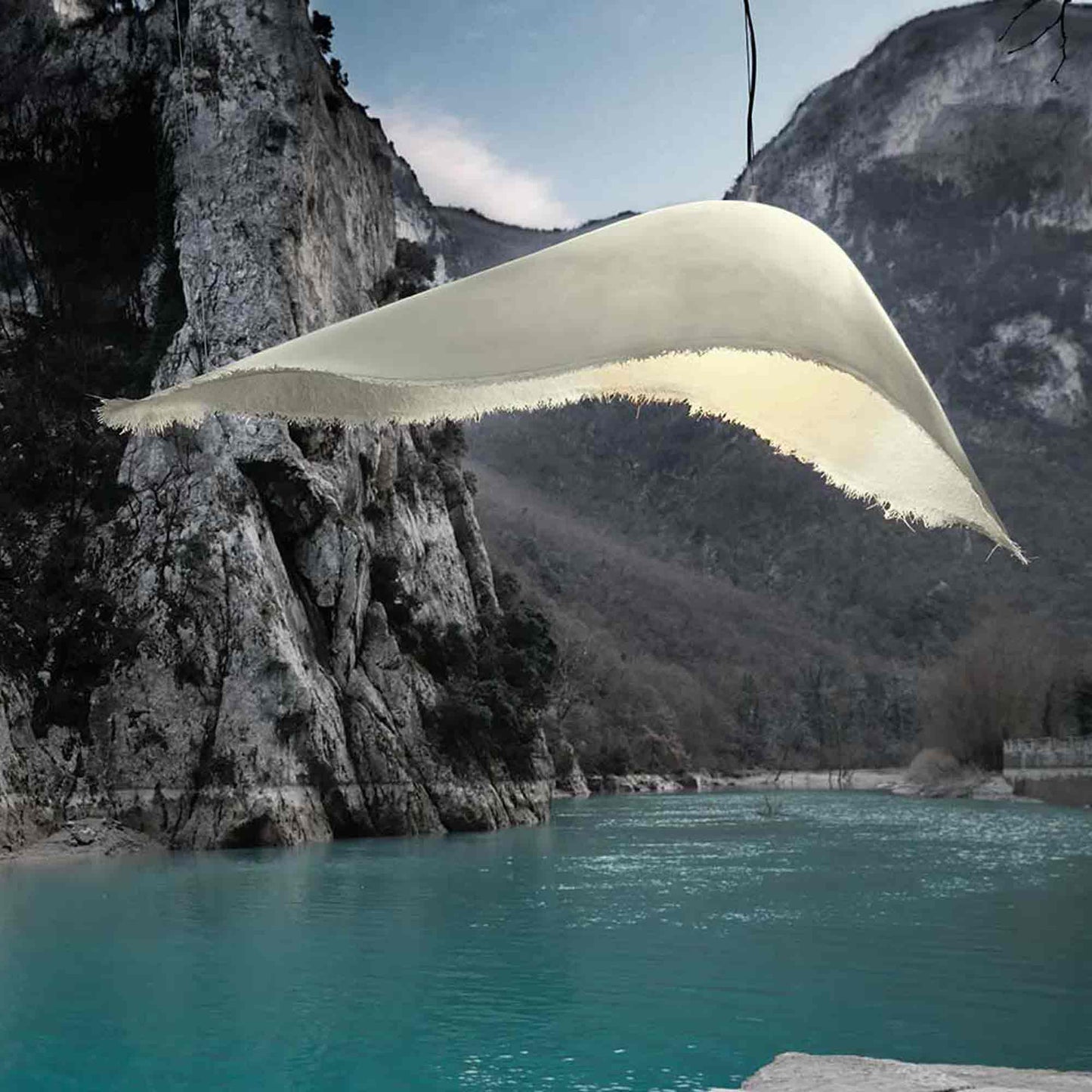 Purposefully frayed edges add a charming texture to the Moby Dick Pendant Light from Karman as it floats in a space. The graceful, sweeping silhouette lend a majestic touch to the ghost-like white whale shape of this LED pendant light.